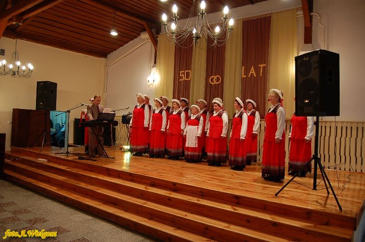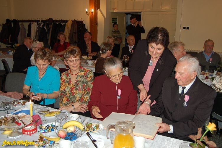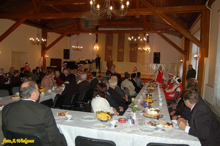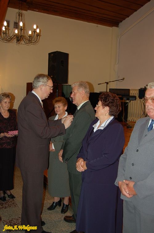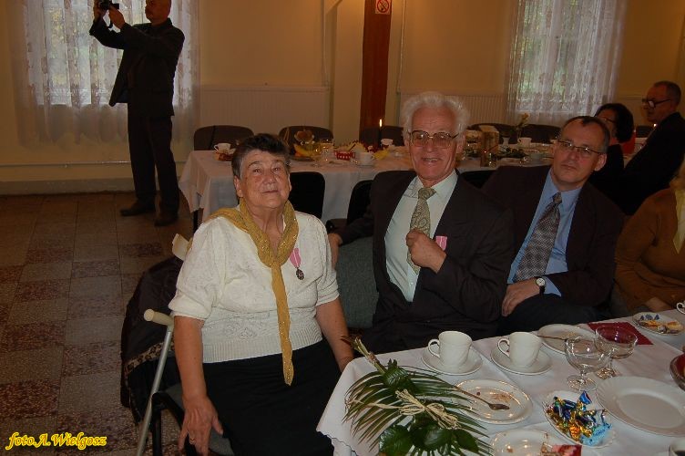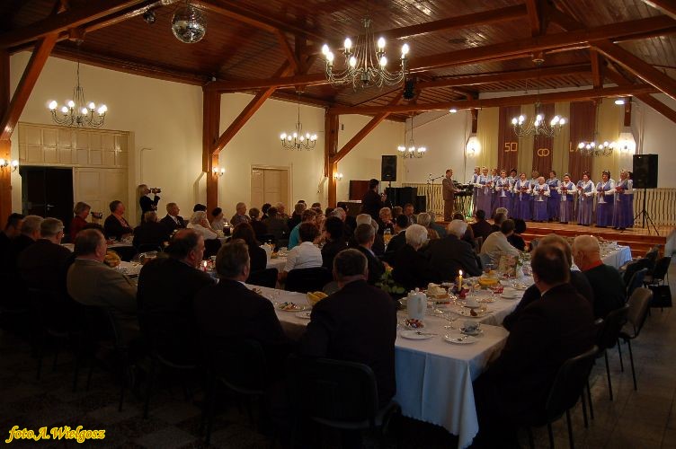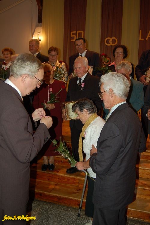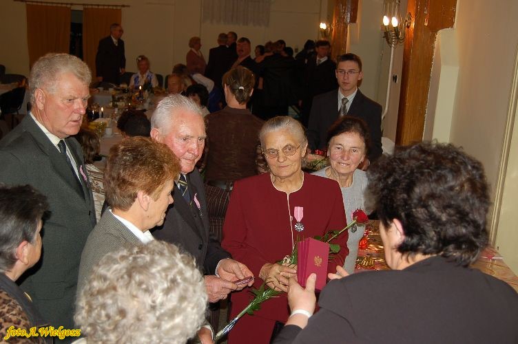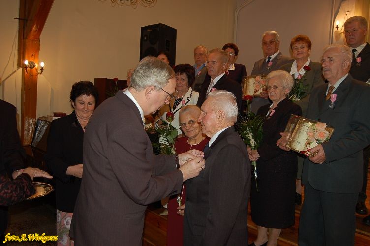 Uroczystość miała charakter gminno-parafialny. Na początku o godz. 12.15 pary obchodzące swoje „Złote Gody” udały się do kościoła po to, aby podziękować Bogu za zgodne pożycie małżeńskie. Msza św. koncelebrowana przez księży naszej parafii ks. kanonika Zdzisława Potrawiaka oraz ks. wikariusza Tomasza Nowaka miała uroczysty charakter, w którym swój udział miał także kaźmierski chór „Moniuszko”. Po mszy ksiądz kanonik w imieniu obecnego na niej wójta dr Wiesława Włodarczaka zaprosił jubilatów na dalszą część uroczystości do Gminnego Ośrodka Kultury. W sali GOK na dostojnych gości i towarzyszące im osoby czekał gospodarz p. Piotr Pospieszny, który powitał przybyłe pary i zaproszonych gości. Obecni byli również przedstawiciele władz gminnych oraz sołtysi wsi, w których na co dzień mieszkają jubilaci. Wójt Gminy Kaźmierz p. Wiesław Włodarczak przywitał jubilatów składając im gratulacje i życzenia dalszych długich lat wspólnego pożycia. „Złotym” jubilatom Prezydent RP przyznał specjalne odznaczenia-medale "Za Długoletnie Pożycie Małżeńskie". Aktu dekoracji dokonał Wójt Gminy Kaźmierz w towarzystwie byłej (emerytowanej) kierowniczki USC p. Wandy Krystkowiak oraz obecnej kierowniczki USC p. Lucyny Gawłowskiej. Dodatkowo każda z par otrzymała kwiatek i upominek. Po dekoracji przyszedł czas na wspólny toast, po którym nastąpiła część artystyczna. W tej części swoim muzycznym talentem popisali się panowie Piotr Pospieszny i Waldemar Hermann pracownicy GOK, którzy wspólnie zagrali kilka utworów dla zebranych gości. W dalszej części artystycznej wystąpił coraz popularniejszy w naszej gminie i nie tylko zespół „Kaźmierzanka”. Zespół przypomniał popularne piosenki biesiadne, wśród których nie zabrakło i tych, które grane były na weselach przed pięćdziesięciu laty. Swoje umiejętności gry na instrumentach klawiszowych zaprezentował Bartek Dolata, wykonując utwory na pianinie. Wszyscy uczestnicy uroczystości z wielką uwagą słuchali muzyki i piosenek popijając przy tym kawę i zajadając się tortem oraz innymi słodyczami, o które zadbała p. Lucyna Gawłowska. Wspomnieć należy, że po raz kolejny przy organizacji tego typu imprezy nie zabrakło pań z naszej Publicznej Biblioteki, które wspomagały organizatorów w przygotowaniu poczęstunku. Na zakończenie wszyscy dostojni jubilaci wpisali się do „Księgi Pamiątkowej”. Miejmy nadzieję, że te chwile spędzone wspólnie z przedstawicielami naszych lokalnych władz i kościoła na długo pozostaną w pamięci ich uczestników.