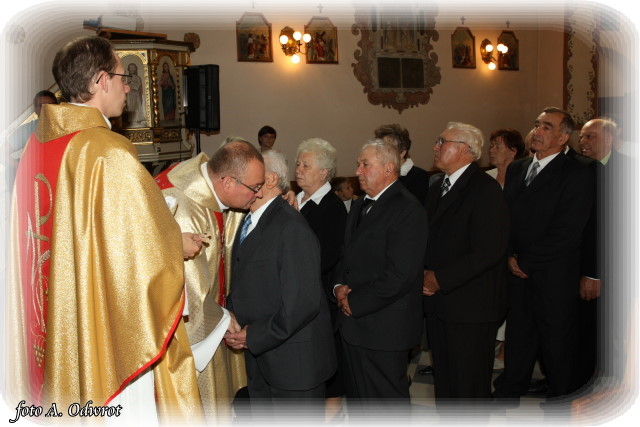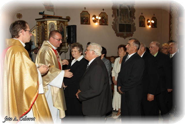W niedzielę 20 września 15 par obchodziło uroczyście Jubileusz 50-lecia zawarcia związku małżeńskiego. Uroczystość od kilku lat ma charakter gminno-parafialny i tak, jak co roku rozpoczęła się Mszą Świętą koncelebrowaną, której przewodniczył proboszcz naszej parafii ks. Krzysztof Musiał. Podczas mszy, w której uczestniczyli ks. Tadeusz Murawski proboszcz parafii w Ceradzu Kościelnym i wikariusz parafii kaźmierskiej ks. Waldemar Bączkowski, dostojni Jubilaci obdarowani zostali pamiątkowymi krzyżami.