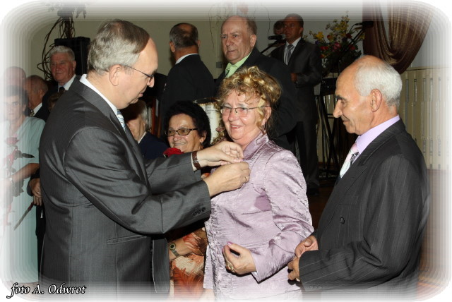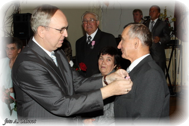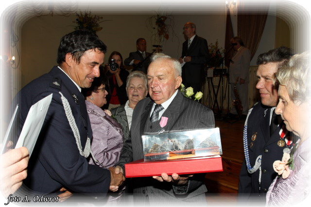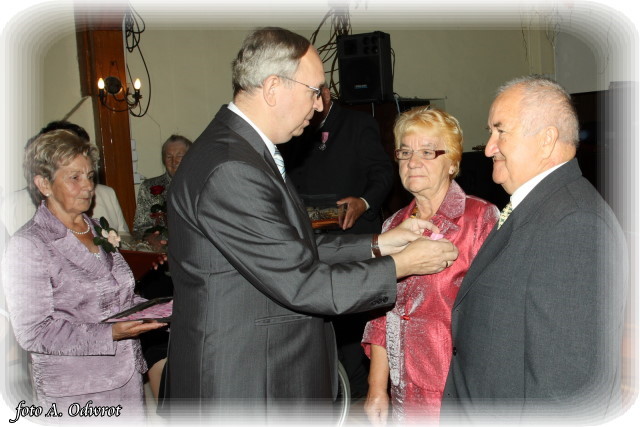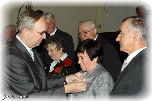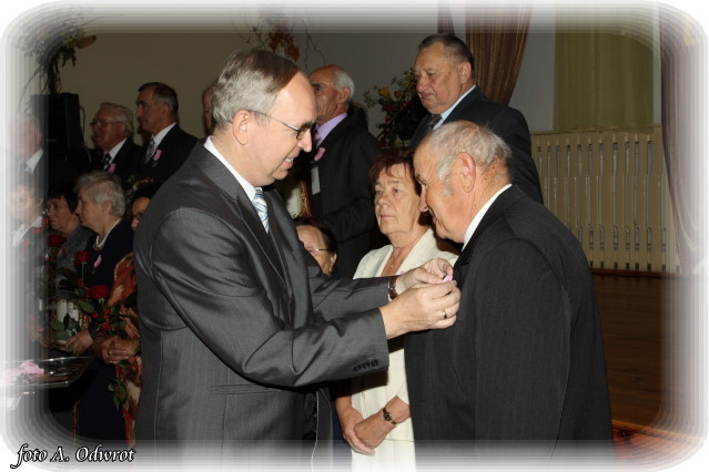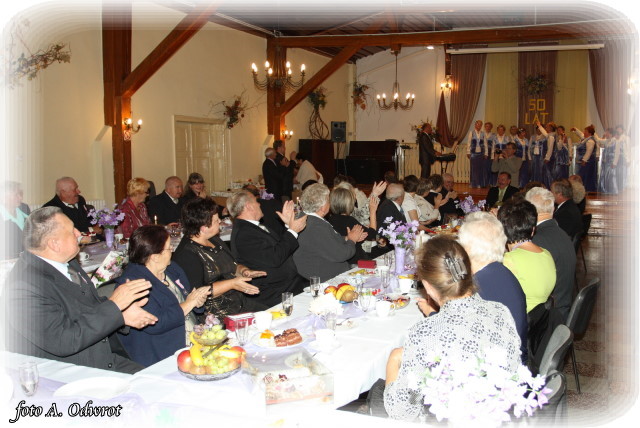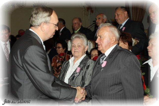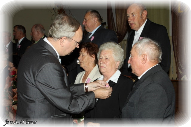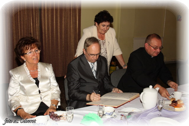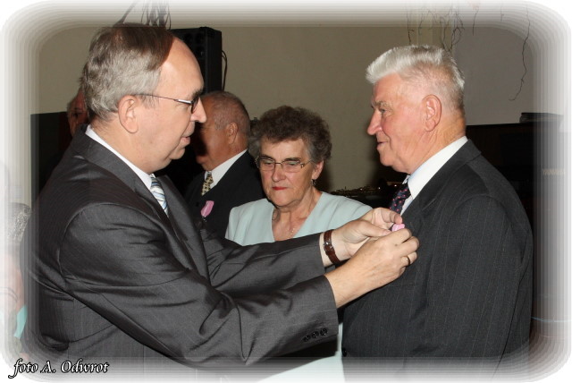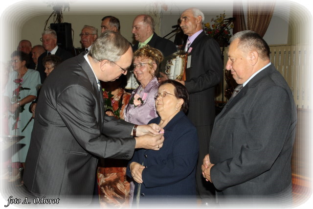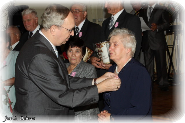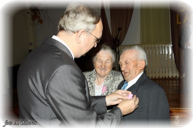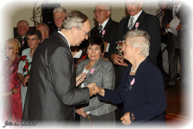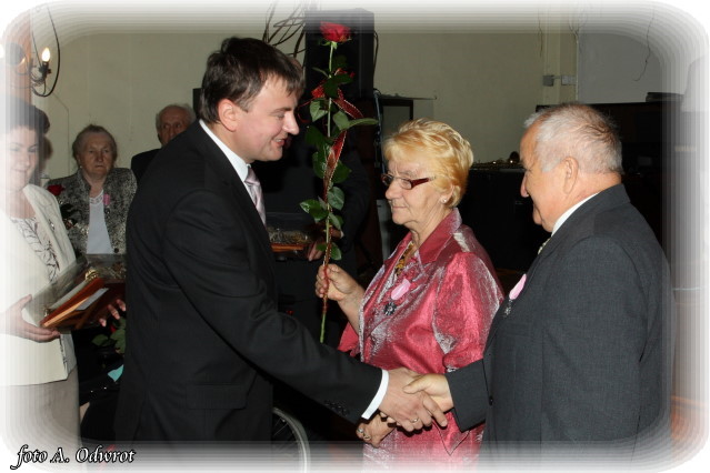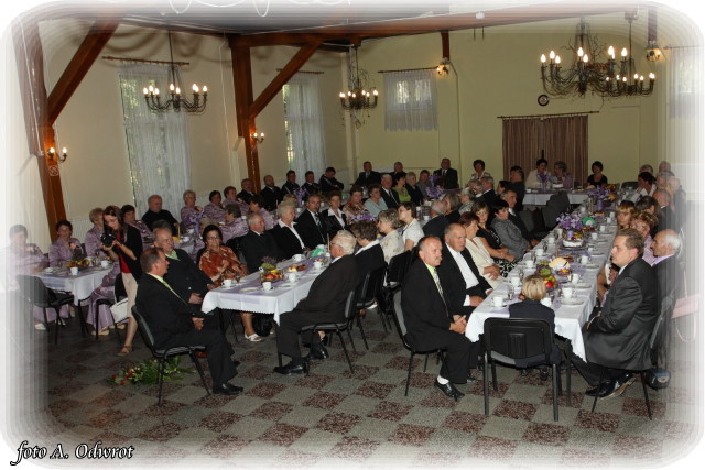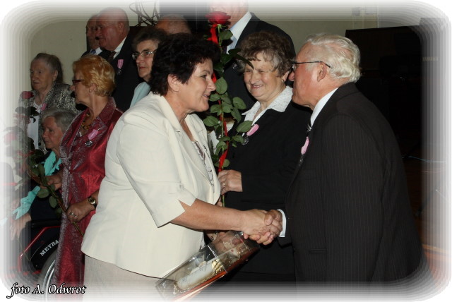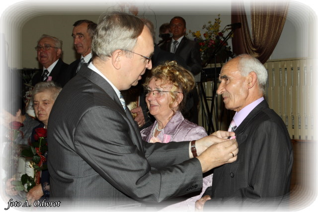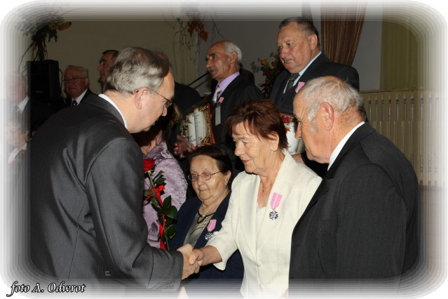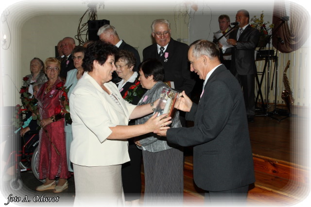 W homilii ks. Krzysztof zwrócił uwagę na coraz częstsze zjawisko życia na tzw. kocią łapę, kiedy to pary pomimo braku jakichkolwiek przeszkód do zawarcia sakramentalnego związku decydują się na życie bez Bożego błogosławieństwa. Dlatego autentycznym wzorem dla współczesnych młodych par powinni być ich rodzice czy dziadkowie, którzy w zgodnym i wiernym związku przetrwali pół wieku. Zapewne w ich życiu bywały chwile tzw. kryzysów być może były i „ciche dni”, czy też oznaki zwątpienia; jednak żyjąc w zgodzie z własnym sumieniem i będąc wiernym swojej przysiędze złożonej wobec Boga zdołali pokonać wszelkie trudności. Na zakończenie Eucharystii Jubilaci przyjęli Boże błogosławieństwo na dalsze lata wspólnego życia. Po uroczystości religijnej Złoci Jubilaci udali się na zaproszenie władz gminnych do sali Gminnego Ośrodka Kultury. Tam z rąk wójta Gminy Kaźmierz dr Wiesława Włodarczaka otrzymali medale nadane przez Prezydenta RP – Lecha Kaczyńskiego, kwiaty i prezenty. W uroczystości udział wzięli członkowie rodzin i sołtysi wsi, z których pochodzą małżonkowie. Przy słodkim poczęstunku goście wysłuchali koncertu zespołu „Kaźmierzanka” i wpisali się do Księgi Pamiątkowej.