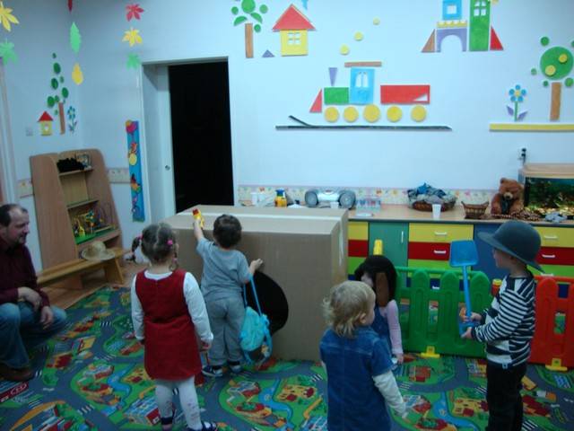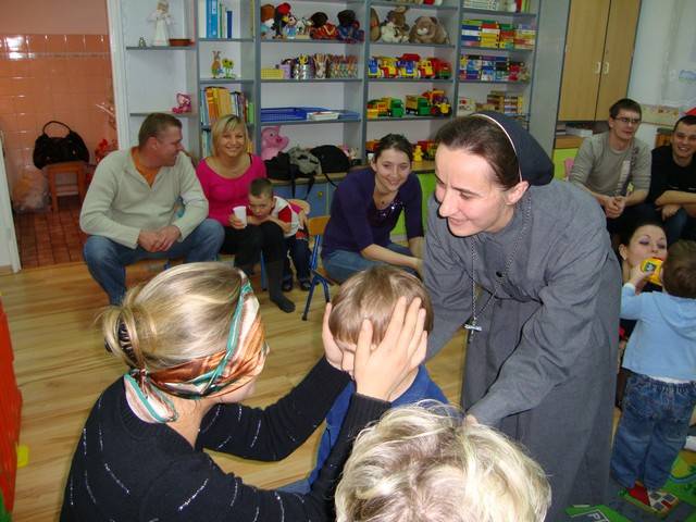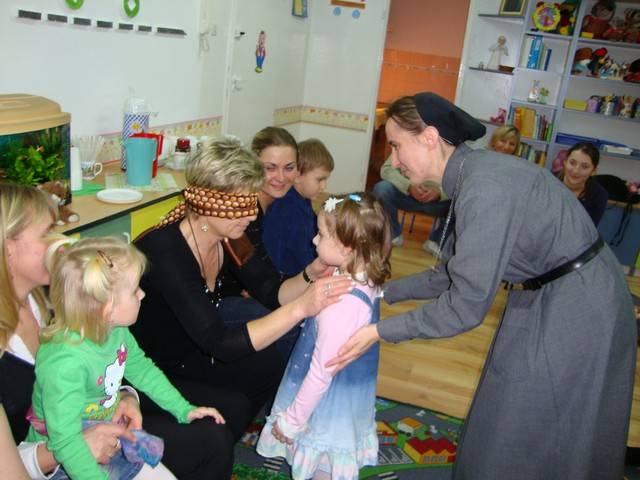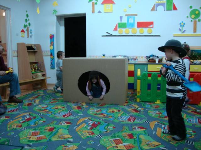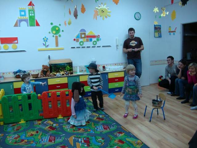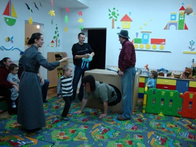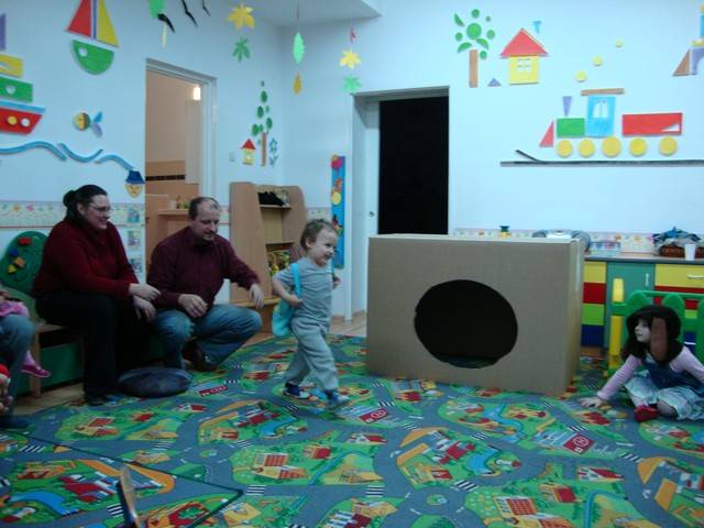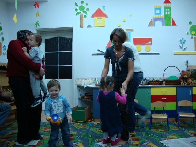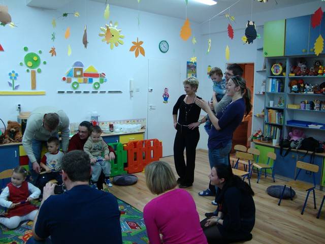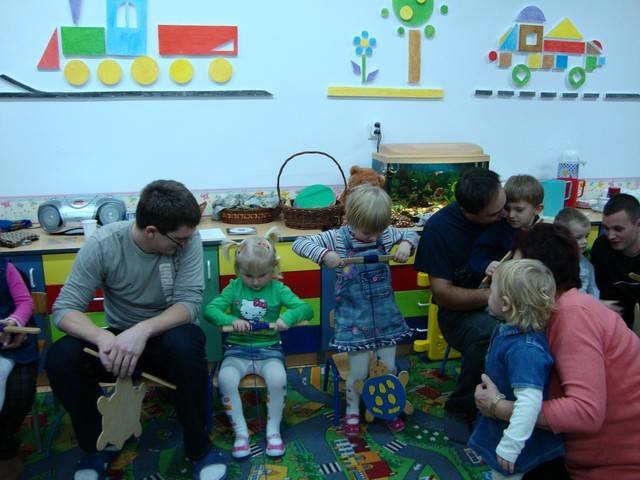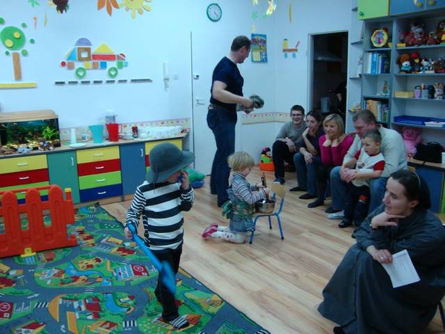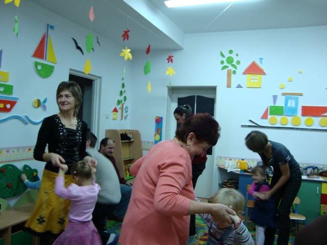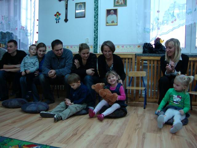 Niedzielne popołudnie 22 listopada maluchy z przedszkola Sióstr Urszulanek w Sokolnikach Wielkich spędziły razem ze swymi rodzicami. Spotkanie zostało zorganizowane w przedszkolu, ponieważ to miejsce znają wszyscy doskonale i nawet te najmniejsze osóbki zdążyły się już z nim oswoić przychodząc tu codziennie od września. W ten sposób chcieliśmy poznać się bliżej i pokazać, że dorośli potrafią się bawić wespół ze swymi pociechami. Rozpoczęliśmy naszą integrację od przedstawienia się nawzajem. Dzieci trzymając pluszowego misia mówiły swoje imię oraz z kim przyszły na spotkanie - wskazywały na swoich kochanych rodziców, rodzeństwo oraz babcie. Dalszym punktem programu były wspólne tańce i zabawy ze śpiewem. Nie zabrakło na ten przykład tradycyjnej zabawy w "Kotka i myszkę", gdzie dziecko goniło rodzica lub odwrotnie kot - rodzic gonił dziecko- myszkę. Wielkim entuzjazmem cieszył się taniec z wiewióreczką, podczas którego dzieci uczyły rodziców kolejnych kroków.