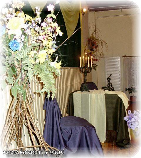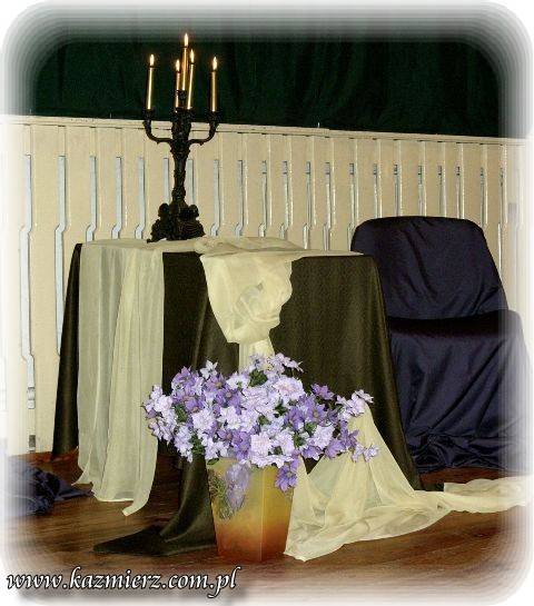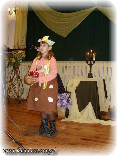 Spośród licznej rzeszy utwory do konkursu została wytypowana taka ich grupa, która ukazuje życie oraz otaczającą rzeczywistość - nierzadko mglistą i dżdżystą aurę jak na tę porę roku przystało. Piękno jesieni ukazano jednak również poprzez liczne odniesienia do jej kolorów, słonka i przepysznych darów ziemi, jakie w tym czasie są zbierane z pól, łąk i lasów naszej ojczyzny. Niektórzy konkursowicze posiłkowali się własnymi pomysłami plastycznymi ilustrującymi ich kreację. W klimat tego wieczoru bardzo pięknie wpisała się również dekoracja zaaranżowana na scenie. Mały niewielki stolik nakryto obrusem i jednocześnie przepasany on został jasną tkaniną podobnie jak stojące obok dwa krzesła, które okryto fałdami nastrojowej w swym odcieniu tkaniny. Pośrodku postawiono świecznik a palące się żywym ogniem świece wprawiały zgromadzonych w nastrój zadumy a może nawet melancholii. Przed tym zestawem mebli postawiono wazon, który dopełnił całości kompozycji. Oczywiście w tym wazonie znalazł się stosowny jesienny bukiet.