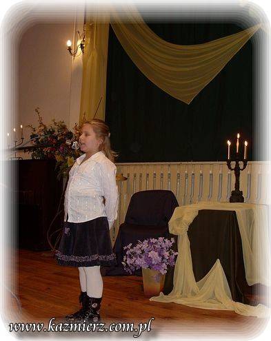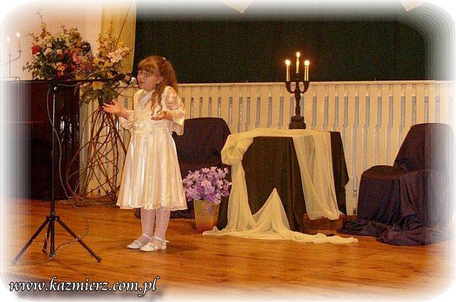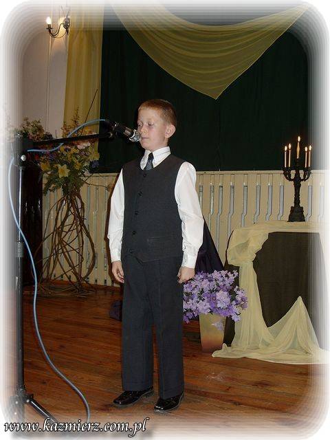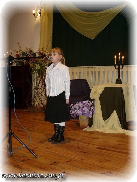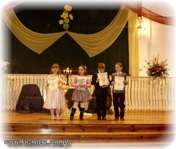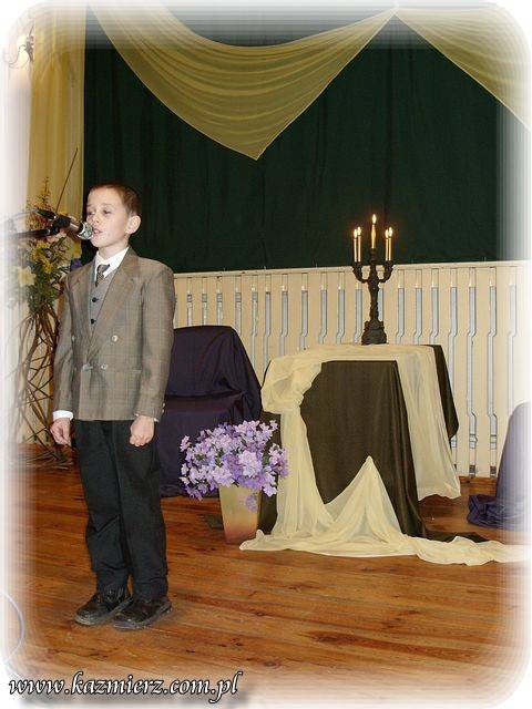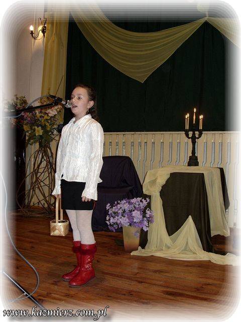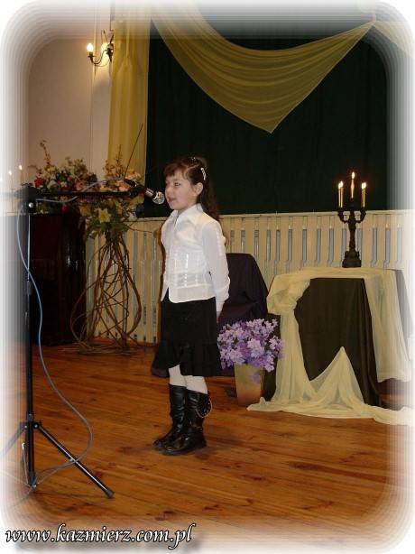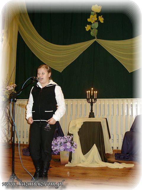 Pomimo iż w Kaźmierskim GOK -u nie pojawiło się na widowni zbyt wielu amatorów "duchowych przeżyć" to jednak z frekwencji uczestników konkursu można raczej być zadowolonym. Na sali obok nich znalazło się grono nauczycieli i rodziców, którzy oklaskami zachęcali swe dzieci i podopiecznych do intelektualnego wysiłku. To niewątpliwie pozytywny aspekt tego konkursu. Negatyw to oczywiście to, że publiczność - ta szerzej rozumiana nie dopisała. I nic w tym dziwnego można by powiedzieć, ale... Tak naprawdę w obecnych czasach jest coraz mniej ludzi, którzy rozumieją poezję, muzykę i wogóle sztukę. Sztukę – tę pomyślaną i wykonywaną przez duże „S”. Wszelkie zjawiska kulturalne są bardzo spłycane przez media, pop kulturę i przede wszystkim przez samych ludzi, czyli przez odbiorców tej kultury. Nie można tego zjawiska ogarnąć zdrowym rozsądkiem i jednocześnie wyciągając prawidłowe wnioski. Spora grupa tak zwanych "twórców współczesnych" piszących np. poezję, muzykę czy tworzących na innych płaszczyznach bardzo często, tak naprawdę chcą jedynie przekazać pewne treści powierzchowne i zazwyczaj negatywne w swej wymowie. Podszywają się pod różne teorie związane z niby to kulturą uprawiając przy tym po prostu grafomanię i koloryzując prostactwo. Współczesny świat pędzi szybko i błądzi gdzieś w nieznaną przestrzeń. Jednak każdy człowiek powinien przecież kierować się zawsze własnym rozumem i pozytywnymi zasadami! Dlatego dobrze, że są jeszcze organizowane takie małe perełki kulturalne, które wymuszają myślenie i zarazem korzystnie oddziaływają na najmłodsze pokolenie było nie było przyszłych konsumentów kultury!