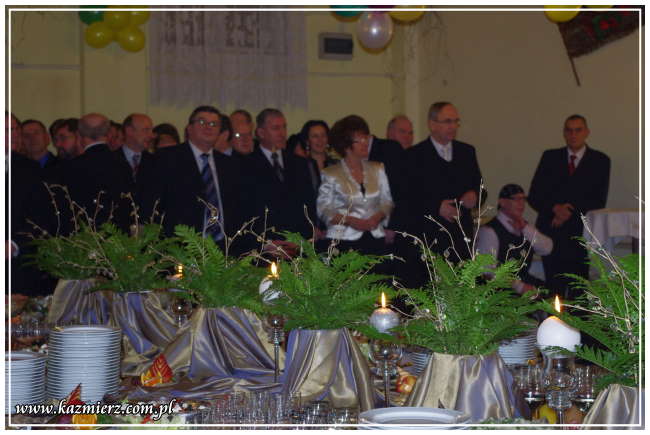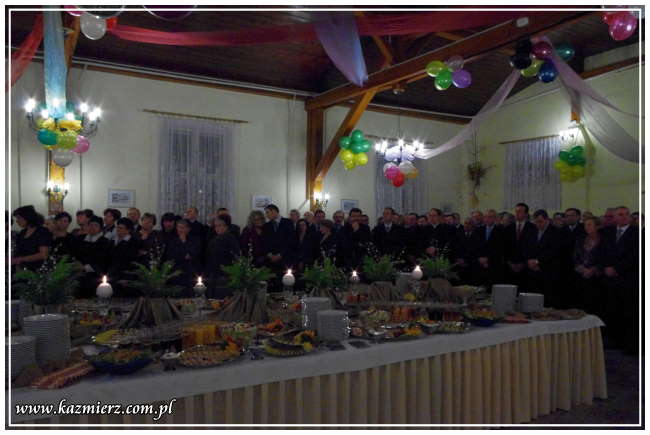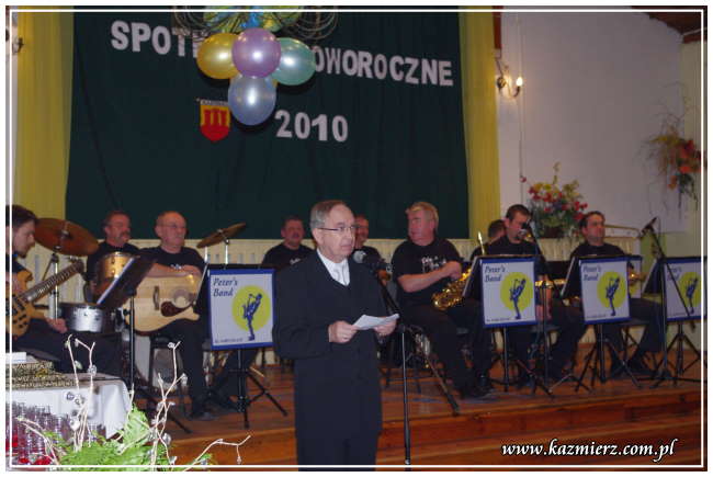 O oprawę muzyczną zadbał dyrektor Gminnego Ośrodka Kultury Piotr Pospieszny wraz z zespołem Peter's Band. Po oficjalnym powitaniu przez wójta Wiesława Włodarczaka goście wysłuchali kilku utworów w wykonaniu big-bandu, po czym oczy wszystkich skierowały się ku ekranowi, na którym wyświetlona została prezentacja multimedialna. Z filmu autorstwa p. Andrzeja Odwrota uczestnicy spotkania dowiedzieli się o wydarzeniach, jakie miały miejsce na terenie naszej gminy w minionym roku. Na filmie przedstawiono wydarzenia kulturalne oraz pokazane zostały poczynione inwestycje, do których należały; oddanie do użytku kompleksu boisk wielofunkcyjnych w ramach rządowego programu ORLIK 2012, urządzenie nowego boiska przy ul. Nowowiejskiej w Kaźmierzu, przebudowa ulic; Szkolnej i Poznańskiej. Wspomniano również o wyróżnieniach i nagrodach dla Gminy Kaźmierz, dla wójta Wiesława Włodarczaka oraz dla Gminnej Biblioteki Publicznej, dla której rok 2009 był rokiem wielu sukcesów. Z prezentacji jasno wynika, że pomimo wszechobecnego kryzysu, umiejętne wykorzystywanie środków własnych i pozyskanie pieniędzy ze środków unijnych pozwoliło na rozpoczęcie lub na zakończenie pewnych ważnych dla mieszkańców inwestycji.