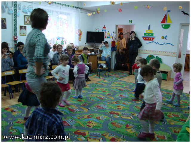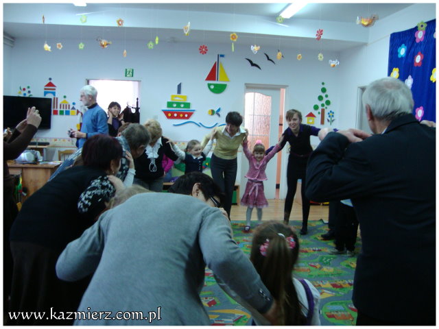 W programie były też przewidziane wspólne zabawy ze śpiewem w kole typu "Siała Baba mak", "Kot i mysz"...., konkursy sprawnościowe: który żółwik pierwszy wróci do domu oraz czarodziejski worek dziecięcych zabawek. Wspólnej zabawie towarzyszyła wesoła atmosfera - bawili się duzi i mali, co widać na załączonych zdjęciach.