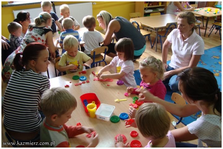 Pójście malucha do przedszkola niesie za sobą wiele zmian. Dla trzylatka to pierwsze rozstanie z domem inny schemat dnia, spotkanie z grupą rówieśników. To również odkrycie, że uwaga opiekuna jest skierowana „nie tylko na mnie”. Dzieci potrzebują czasu, by oswoić się z nowym środowiskiem. W dniach 22 – 26 sierpnia swoje pociechy wspierali rodzice. Ich obecność i wspólne zabawy pomagały w aklimatyzacji oraz dały poczucie bezpieczeństwa. Maluchy codziennie wykazywały się odwagą i coraz większą samodzielnością. O dziwo! – opuszczały przedszkole ze smutną miną, a witały z uśmiechem. Oby takie zachowanie towarzyszyło wszystkim milusińskim przez cały przedszkolny rok 2011 – 2012.