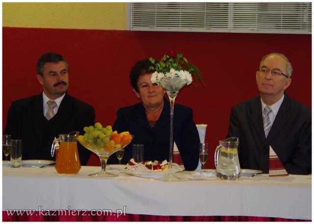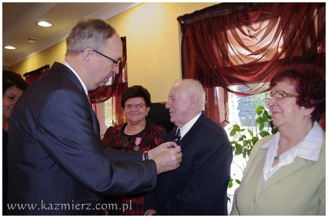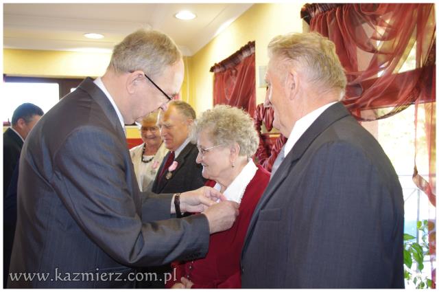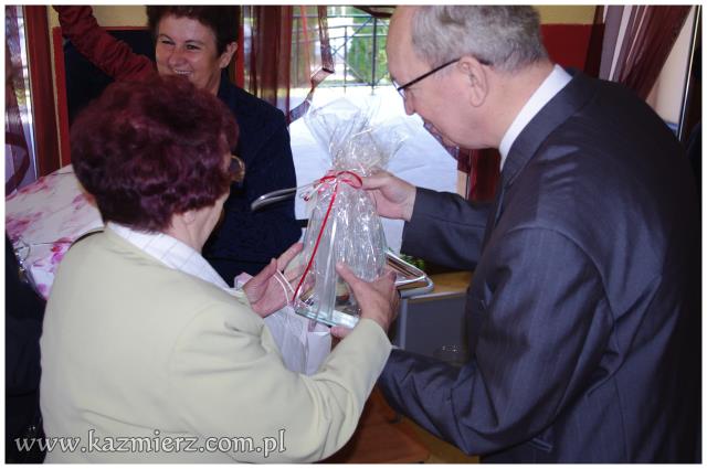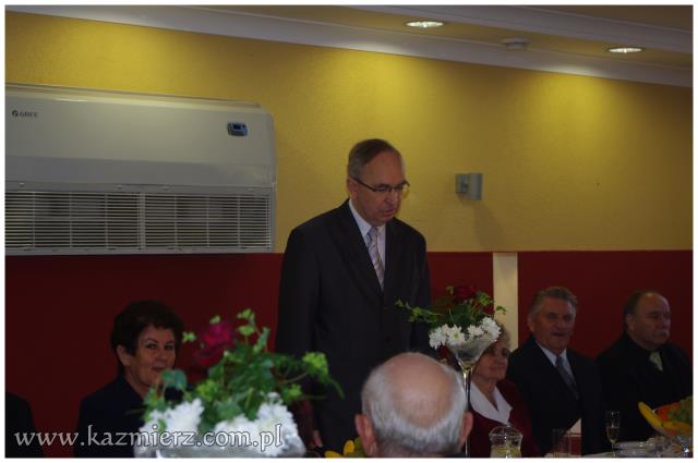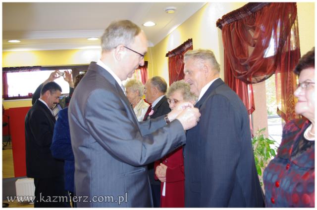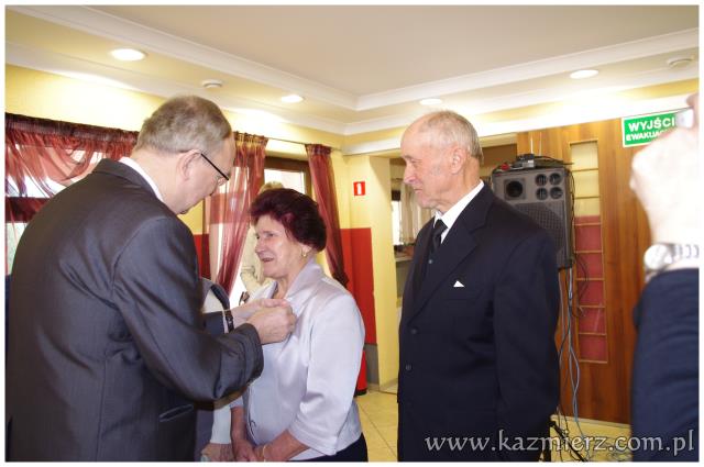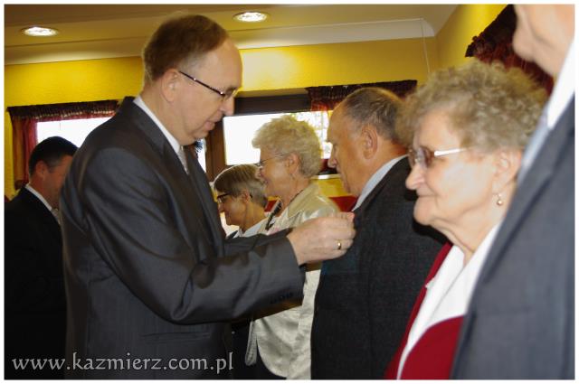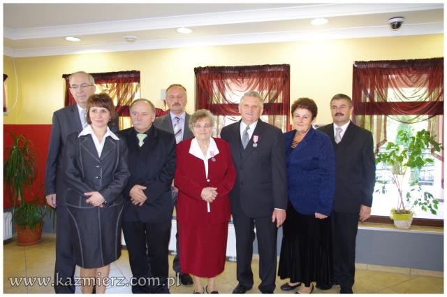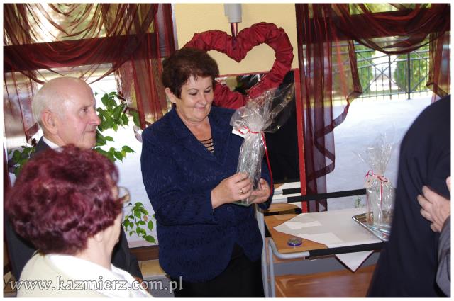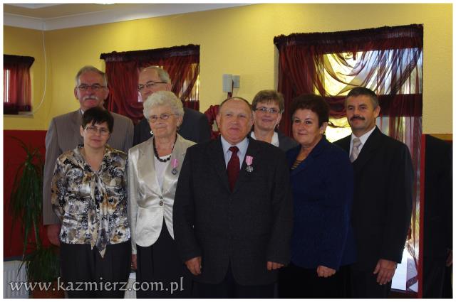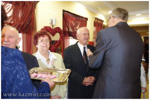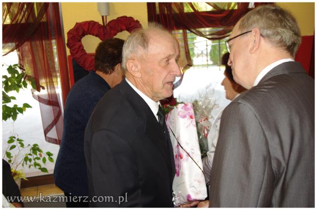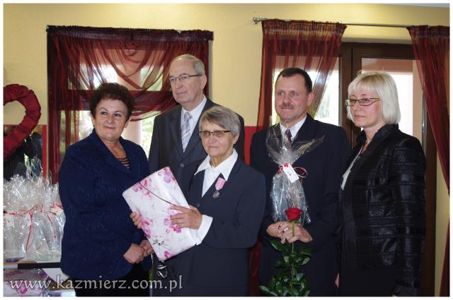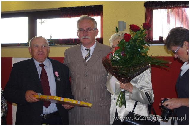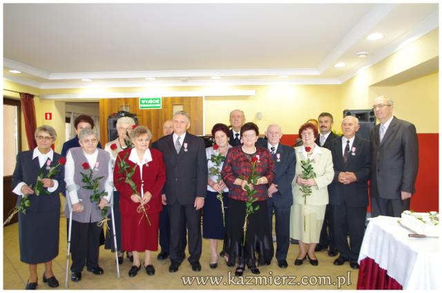 Od wielu lat tego typu spotkania są wyrazem szacunku, jakim darzą Złotych Jubilatów władze samorządowe naszej gminy. Po ciepłym powitaniu i życzeniach dla Jubilatów wójt Włodarczak w towarzystwie kierownika Urzędu Stanu Cywilnego w Kaźmierzu p. Lucyny Gawłowskiej wręczył im medale "Za Długoletnie Pożycie Małżeńskie" przyznawane z tej okazji przez Prezydenta Rzeczypospolitej. Małżonkowie otrzymali również okolicznościowe upominki. Do życzeń przyłączyli się też obecni na spotkaniu sołtysi. Miłą atmosferę, która sprzyjała wspomnieniom, tworzyli grający znane szlagiery panowie Piotr Pospieszny i Waldemar Hermann z Gminnego Ośrodka Kultury. Jubilatom życzymy wiele lat w szczęściu i miłości oraz kolejnych pięknych Jubileuszy.