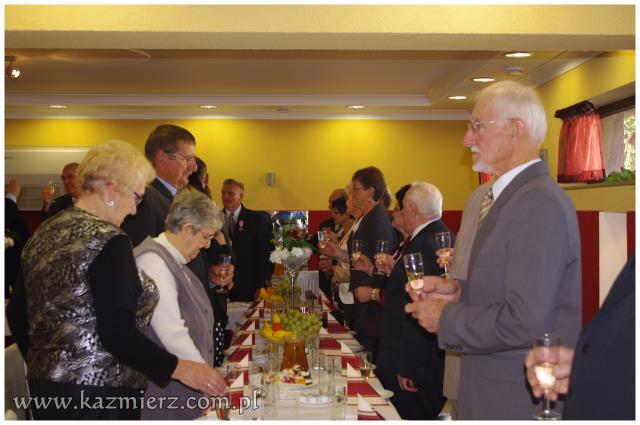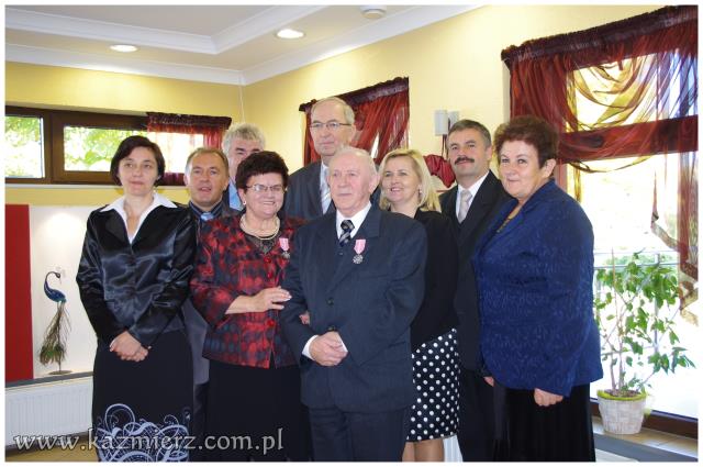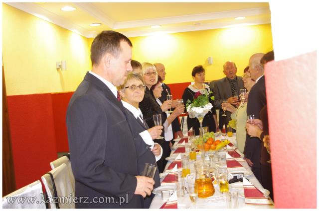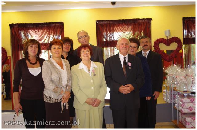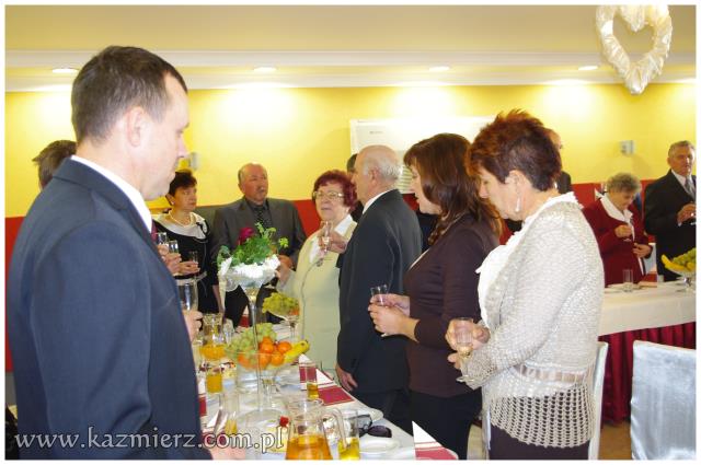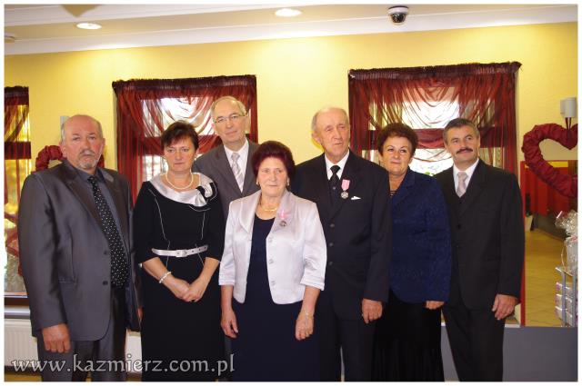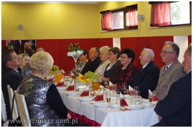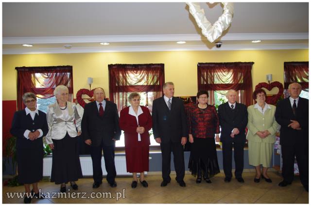 Miniona niedziela 16 października 2011 r., była szczególnym dniem w życiu par małżeńskich Państwa: Zdzisławy i Zygmunta Antkowiaków z Kaźmierza, Marii i Zdzisława Codów z Sokolnik Wielkich, Ireny i Jana Mruków z Pierska, Heleny i Stanisława Osesów z Kaźmierza, Marianny i Zenona Siłaczów z Gaju Wielkiego, Marii i Bogdana Szepczyńskich z Kaźmierza oraz Janiny i Aleksandra Walewiczów z Gaju Wielkiego. Wszystkie pary mają dwie wspólne cechy; wszystkie zawarły swój związek małżeński w roku 1961 i są obecnie mieszkańcami gminy Kaźmierz. Dlatego też Wójt Gminy Kaźmierz dr Wiesław Włodarczak zaprosił małżonków z pięćdziesięcioletnim stażem oraz towarzyszące im osoby najpierw na Mszę św. w ich intencji, a następnie na uroczyste spotkanie do restauracji „Pod Pawiem”.