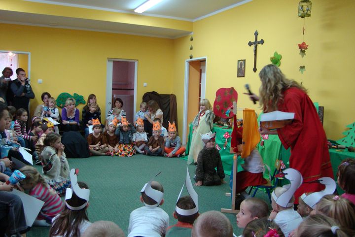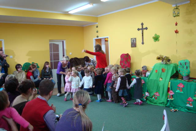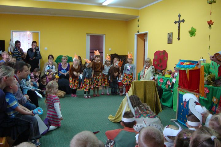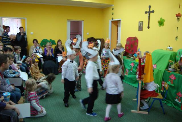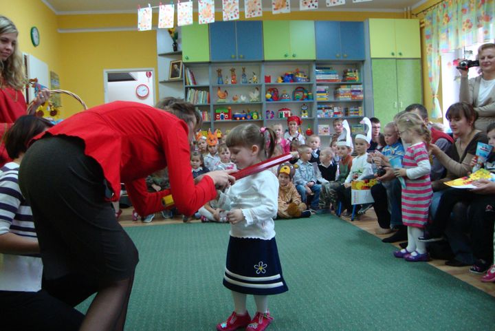 Dnia 28 października 2011 roku w przedszkolu im. św. Urszuli Ledóchowskiej w Sokolnikach Wielkich odbyło się pasowanie na przedszkolaka. Uroczystość rozpoczęły występy naszych milusińskich, którzy pięknie śpiewali i tańczyli. Następnie Pani Maria Starosta, przykładając do ramienia wielką kredkę, pasowała na przedszkolaka każdego dzielnego maluszka oraz dwójkę dzieci z grupy średniaczków, które przyszły do nas w tym roku. Po pasowaniu przyszedł czas na występy pozostałych dzieci naszego przedszkola. Jako pierwsze wystąpiły średniaczki, które wraz z panią Luizą wyrecytowały piękny wierszyk skierowany do najmłodszych. Na zakończenie uroczystości wystąpiła grupa najstarsza. Dzieci poprzebierane w różnokolorowe stroje przedstawili bajkę pt."Jarzębinka".