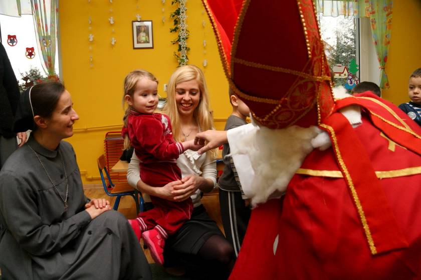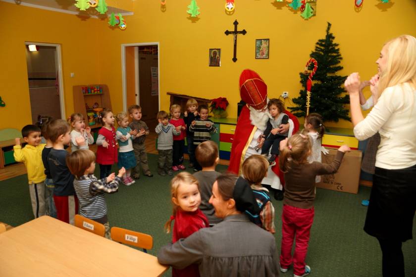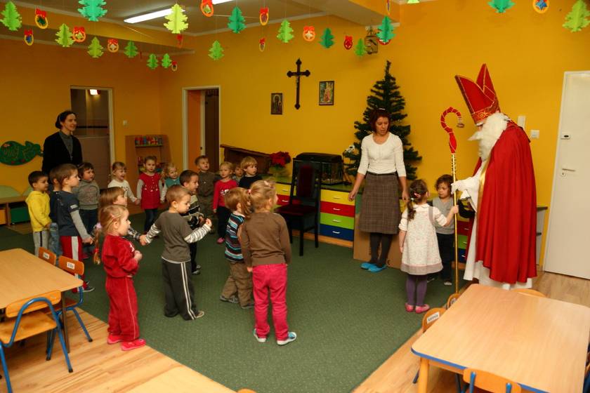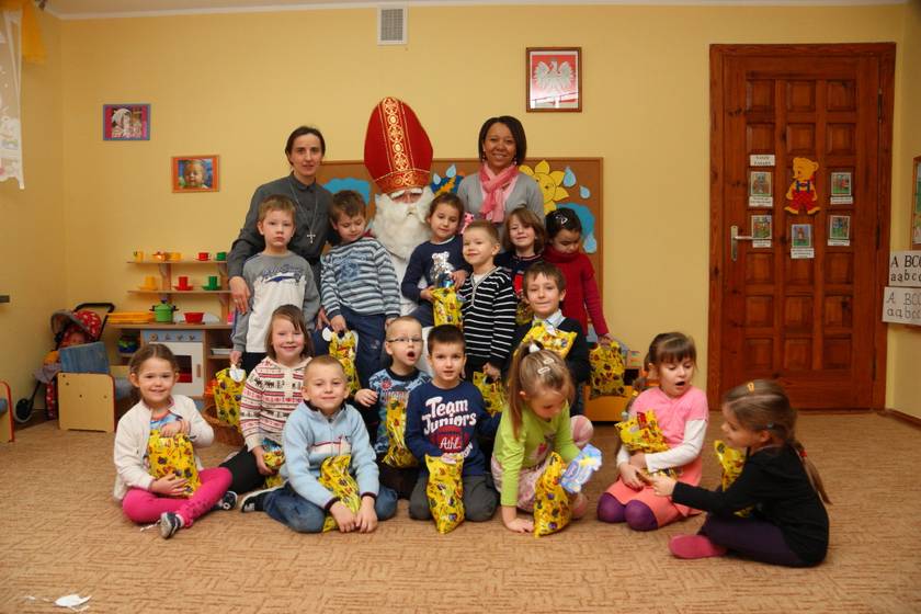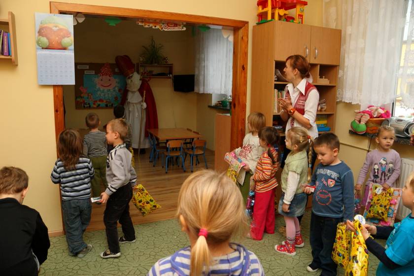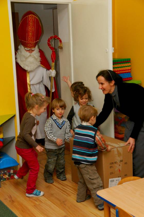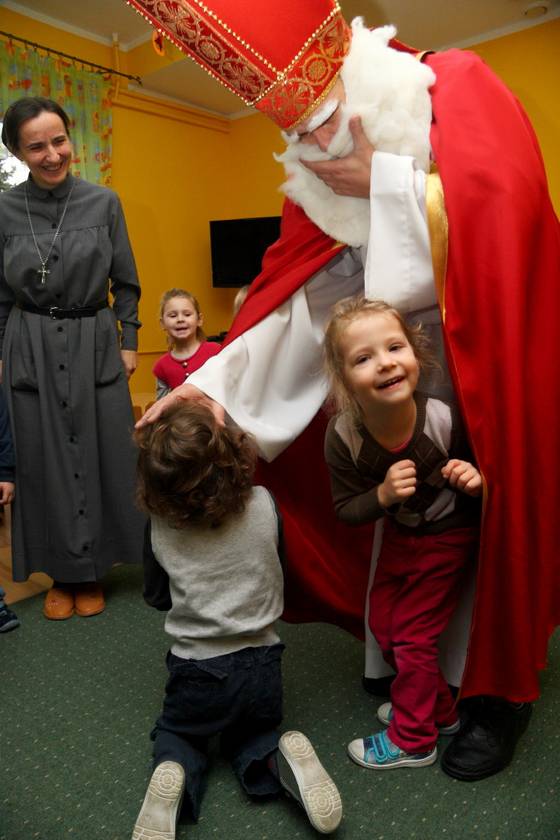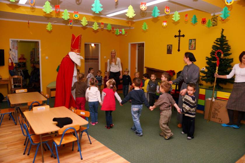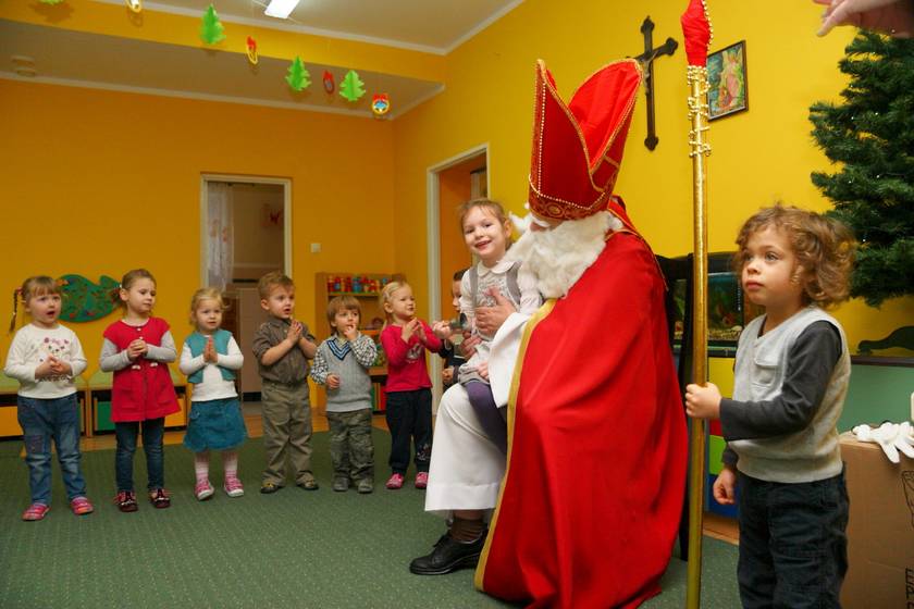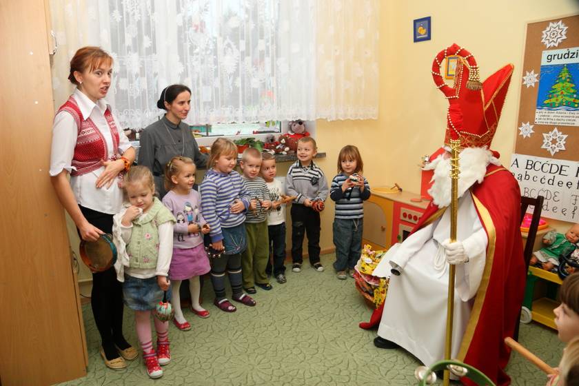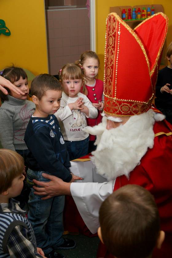 Dnia 6 grudnia 2012 roku w progi naszego przedszkola przybył długo oczekiwany Święty Mikołaj – w stroju biskupa, tak jak głosi legenda. Już od samego rana dzień ten zapowiadał się niezwykle – padał śnieg, a w przedszkolu wszystkie dzieci nasłuchiwały, czy nie słychać dźwięku dzwonka Świętego. Niezwykły gość pojawił się w zaśnieżonym ogródku i zapukał w okno. Dzieci powitały go piosenką, tańcem i specjalnie przygotowanymi na tę okazję wierszykami. W zamian za to Mikołaj obdarował wszystkich wspaniałymi prezentami i łakociami. Święty bardzo się ucieszył, że w tym roku również czekało na niego tak dużo dzieci. Rozmawiając z nimi, zachęcał, aby były grzeczne, słuchały rodziców oraz starszych, przestrzegł największych psotników. Wszystkie dzieci chętnie pozowały do pamiątkowego zdjęcia ze Św. Mikołajem. Spotkanie minęło w bardzo miłej atmosferze. Do zobaczenia za rok!