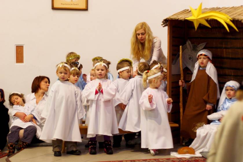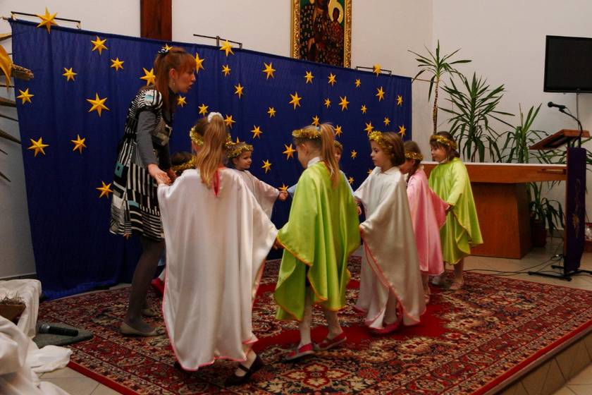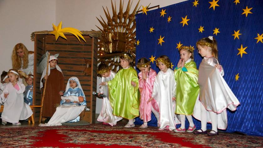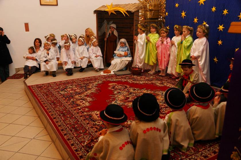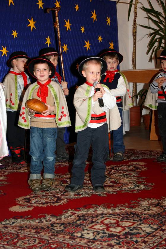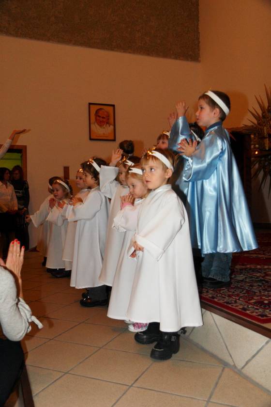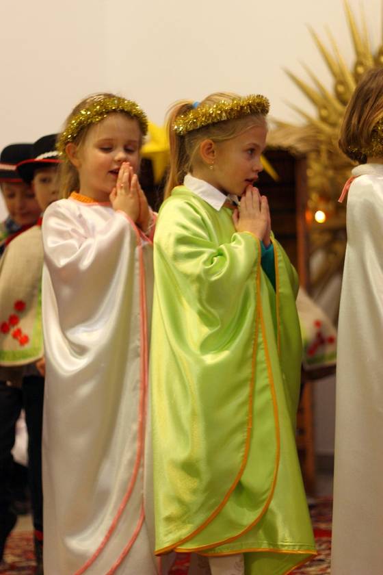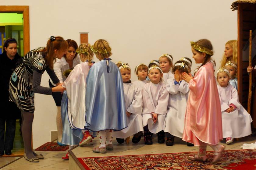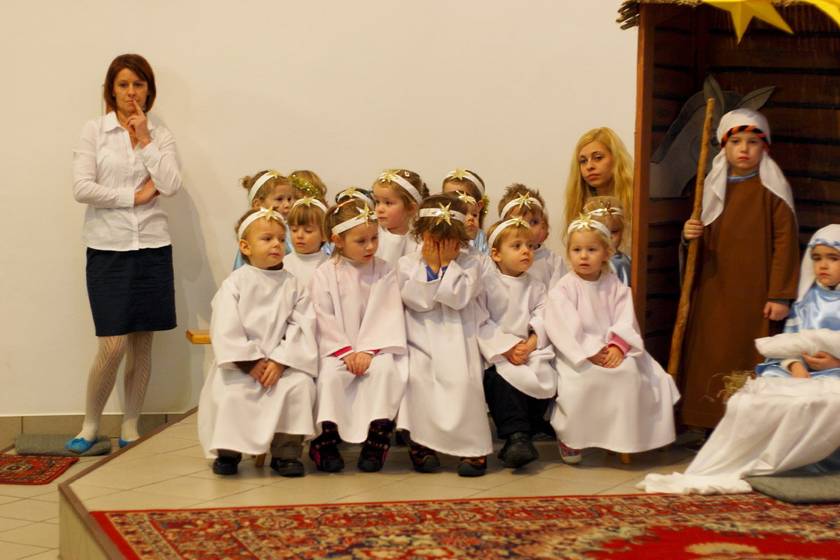 Te Nasze Jasełka miały na celu wprowadzić wszystkich: dzieci i dorosłych w klimat świąt Bożego Narodzenia. I myślę, że to nam się udało. Dzieci podczas pobytu w przedszkolu często wracały do przeżywanych i granych treści. Widząc figurki w szopce mówiły, że to tak, jak w naszych jasełkach. A dorośli zasłuchani, zamyśleni i oczarowani dziećmi wyszli z kaplicy wzruszeni. To Bóg - który Jest, który Był i który Przychodzi - otwiera ludzkie serca na spotkanie z Sobą, a dzieci Panu Bogu w tym tylko trochę pomogły. Resztę niech dopowiedzą zdjęcia.