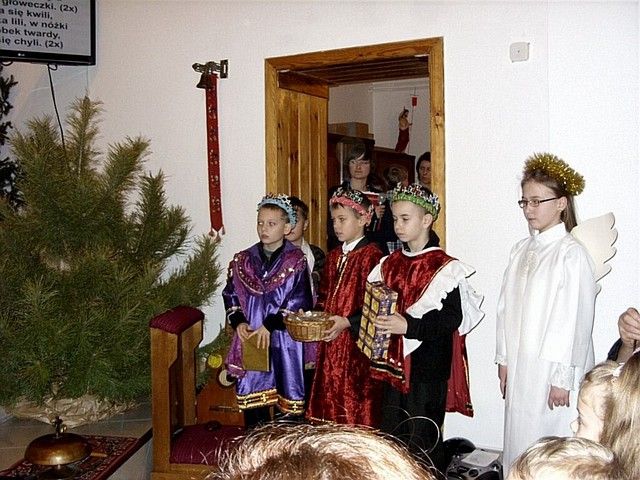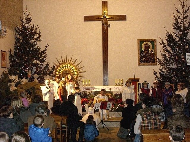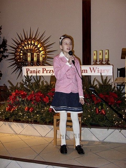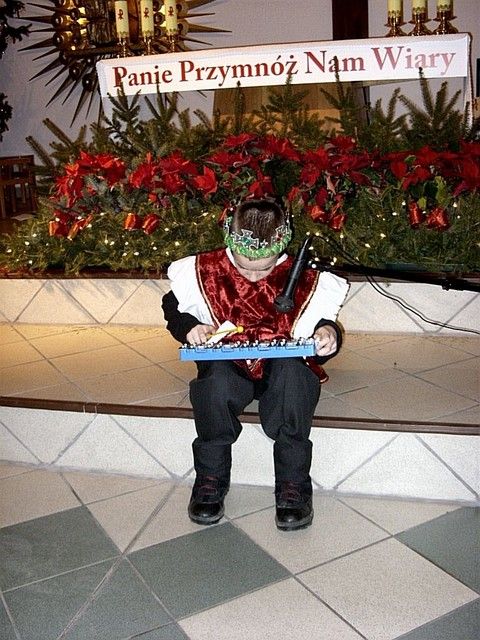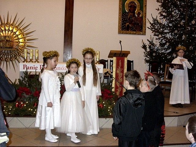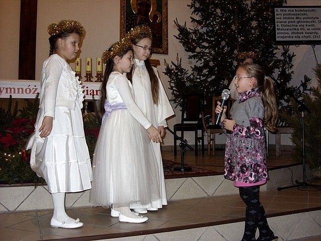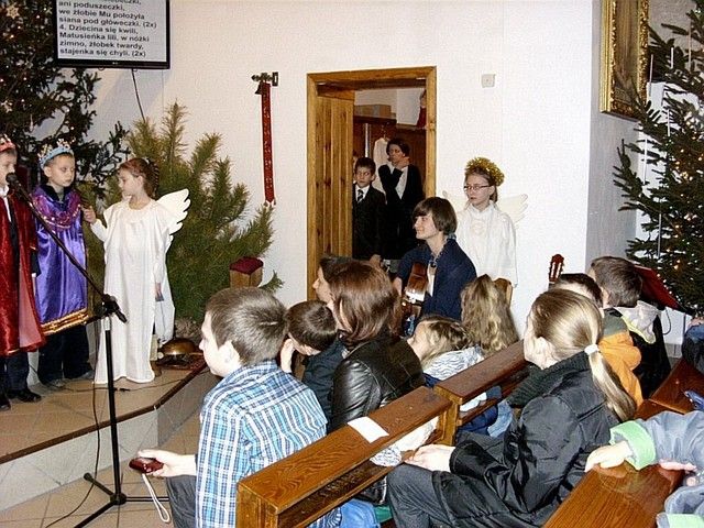 „W tym roku do naszej imprezy przystąpiło około czterdzieścioro wykonawców” - informuje mnie s. Beata Bok i kontynuuje – „jak zwykle na naszej imprezie zespoły i solistów nie oceniało żadne jury. Również z całą pewnością nie jest to eliminacja do Będzina, gdzie od nieomal dwudziestu lat odbywa się festiwal kolęd i pastorałek nawet już dziś o randze międzynarodowego konkursu. Może kiedyś i z naszego rejonu na ten prestiżowy festiwal ktoś pojedzie, bo przecież i tu na wsiach jest bardzo dużo utalentowanych dzieci. Lecz póki co, cele naszego koncertowania są zgoła inne. Dla nas najważniejsze jest to, by pielęgnować tradycję Bożonarodzeniową a przecież śpiewanie kolęd i pastorałek właśnie do niej należy. Otwarta formuła naszych spotkań z wokalistyką jest szczerym i autentycznym zaproszeniem do śpiewu lub chociażby do ich słuchania”. I rzeczywiście słuchając wykonawców nie miałem wrażenia, że jestem gdzieś na poważnej imprezie o bardzo szerokim zasięgu. Zawartość koncertu była bardzo szeroka i obejmowała zarówno kolędy jak również utwory o świątecznym charakterze. Zaprezentowana została również jasełka, podczas której dzieci z miejscowej szkoły zaśpiewały swoje wersje pastorałek. Słuchając prezentacji chciało się jednocześnie razem śpiewać i nieważne czy były wykonywane przez najmłodsze pokolenie, czy też przez nieco starszych adeptów muzycznych. Ich melodyjność i piękne słowa poruszały serca. Mimo że to lokalna atrakcja to posiada już kilkunasto, a nawet kilkudziesięcioletnią tradycję. Merytoryczny poziom tego „wokalnego spotkania” jest natomiast stosunkowo wysoki. Wykonawcy umiejętnie połączyli współczesne aranżacje z tradycyjnym wykonawstwem. W festiwalu nie ma również granicy wiekowej czy przynależnościowej. Każdy może wziąć udział w śpiewie i chwycić za mikrofon, a to umożliwia wielu zespołom i solistom, by się zaprezentować, by pokazać swe talenty. Takie amatorskie granie i śpiew bez wątpienia jest sposobem na promocję siebie, regionu i miejscowości, z których przybyli goście. Dzięki temu tak prostemu połączeniu głosi się nie tylko śpiew, ale również wiele wspaniałych wartości w tym i te oparte na chrześcijańskich i narodowych korzeniach.