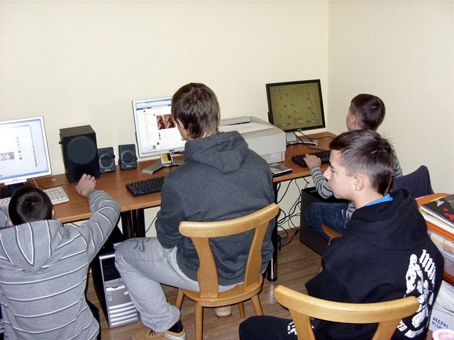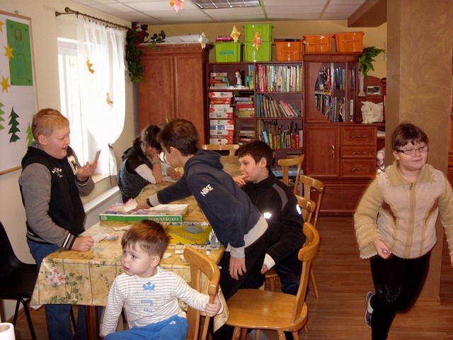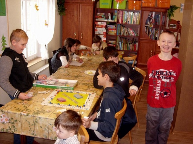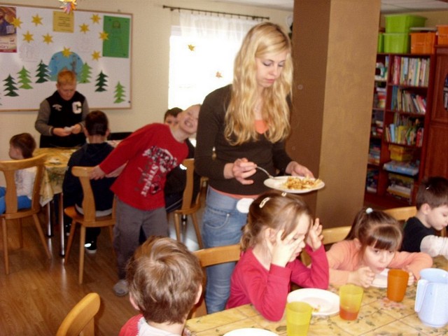 W pierwszym tygodniu ferii zorganizowane zostały w naszej świetlicy półkolonie. Chętnych było całkiem sporo, bo aż 27 dzieci. Każdego dnia były przewidziane nowe zadania i nowe atrakcje urozmaicone oczywiście zabawami na śniegu, a potem ciepłym, „co nie, co”, czyli pałaszowaniem posiłków. Młodzież miała udostępnione komputery i mogli pograć sobie do woli w ping-ponga. Były również zorganizowane gry i zabawy planszowe oraz nauka tańca pod wodzą pani Marii. Niewątpliwie miłą sprawą było wspólne przyrządzanie pizzy wraz z dyplomowanym kucharzem.