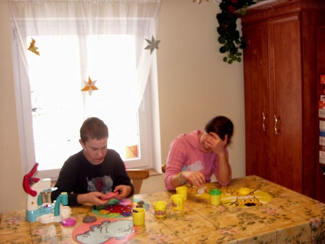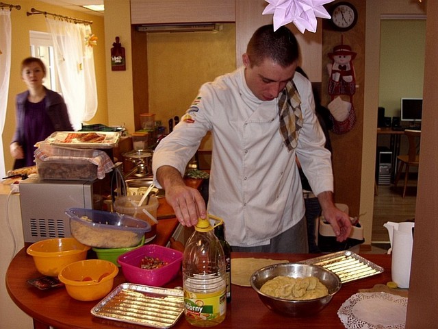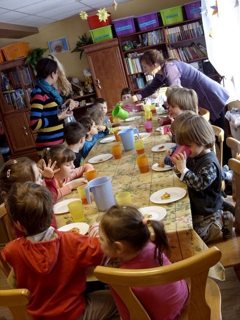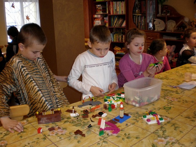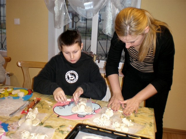 Dzięki sąsiedzkiej pomocy pan Paweł znalazł chwilkę czasu po powrocie z Danii, by pokazać dzieciom jak przyrządzić tę tak lubianą potrawę … wybornie smakowała mówię wam - mniam; palce lizać. Innym razem zaproszona została pani Anna, która razem z dziećmi wyczarowywała z masy solnej różne figury i elementy dekoracyjne. Wielką radością był także bal zorganizowany w salach szkolnych razem z tą placówką a poprowadzony przez pana Waldka. Tu można było zastosować i pochwalić się umiejętnościami nabytymi podczas kursu. Przyjemność dziatwie sprawił również wyjazd na wycieczkę do Poznania. Stało się to dzięki staraniom i organizacyjnym talentom naszej sokolnickiej szkoły. Podczas odwiedzin w stolicy Wielkopolski dzieci obejrzały u o. Franciszkanów największą ruchomą szopkę w Europie oraz były w kinie na filmie zatytułowanym „Strażnicy marzeń”. Nadmienić muszę, że półkolonie zostały sfinansowane z funduszu, który dzieci i młodzież razem z s. Beatą i rodzicami wypracowali przygotowując różne dekoracje Bożonarodzeniowe i oddając je chętnym za symboliczny grosik. Innością były także zajęcia, jakie w świetlicy zostały zorganizowane dla przedszkolaczków. Ten „wyjazd na ferie do świetlicy” został spowodowany krótkotrwałym remontem pomieszczeń zaplecza kuchennego. Mimo to dzieci czuły się tu dobrze i raczej swobodnie. Otoczone wszak zostały ciepłą opieką zarówno przez swoje opiekunki jak również przez s. Beatę i starszych kolegów i koleżanki. Pobyt był wielką dla nich radością i atrakcją i chciały częściej na taki poza przedszkolny wypad wyruszać.