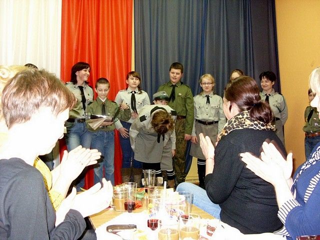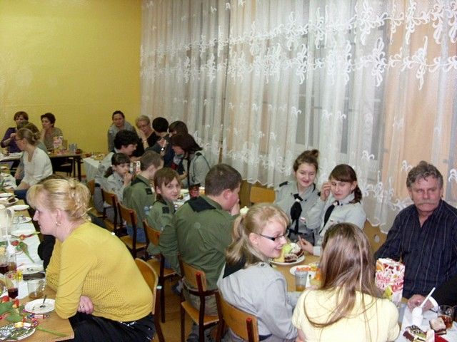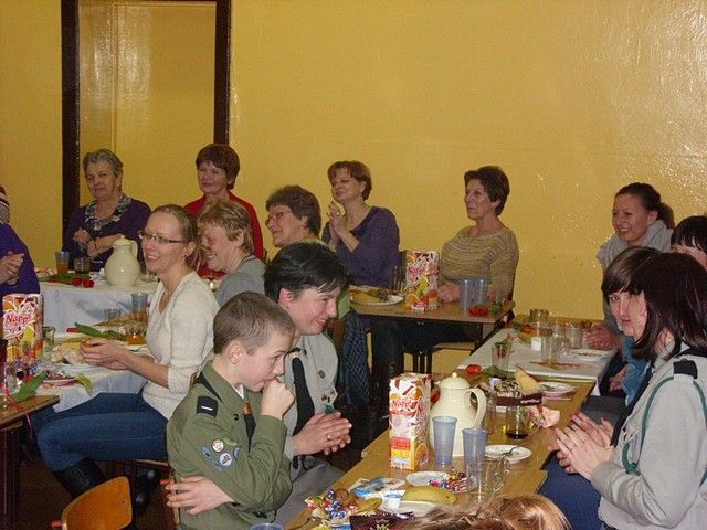 Z podobnego założenia wyszli organizatorzy naszej wiejskiej uroczystości Dnia Kobiet. Dlatego w niedzielę 10 marca w sali Szkoły Podstawowej w Sokolnikach Wielkich sołtys pan Andrzej Toczek zaprosił na spotkanie panie, mieszkanki wioski. Wraz ze swym zastępcą z Rady Wiejskiej p. Zbigniewem Waśkowiakiem poprosił również o przybycie p. Zenona Gałkę; wiceprzewodniczącego Rady Powiatu, by razem złożyć kobiecemu gremium szczere i sympatyczne życzenia. Oczywiście słowom tym towarzyszyło wręczenie wiosennego kwiatka, który w żywy sposób rozpromienił kobiece lica. W dalszej części spotkania głos zabrali kolejni goście. Sołtys tym razem do współpracy zaprosił harcerzy z 65 HDŚ im. Zawiszy Czarnego, którzy przygotowali krótki program artystyczny. Złożyły się nań znane piosenki harcerskiej braci oraz słowo mówione i muzyka klasyczna. Wiele uśmiechu na sali wzbudziły kreacje, w których druhny użyły naszej poznańskiej gwary. Słodki poczęstunek oraz wspólny śpiew i muzyczka dopełniły nastroju tego niedzielnego wieczoru.