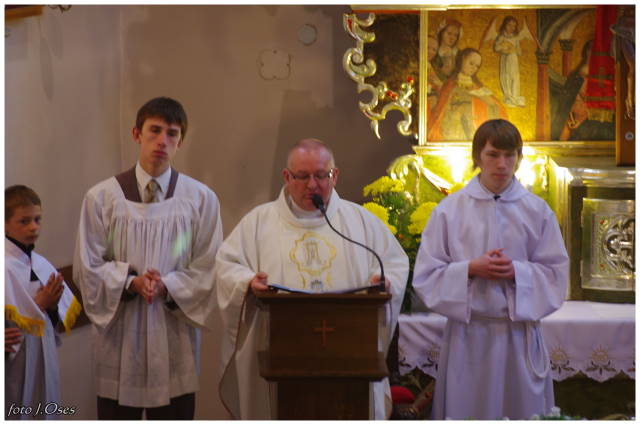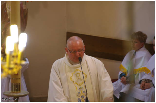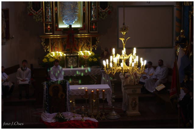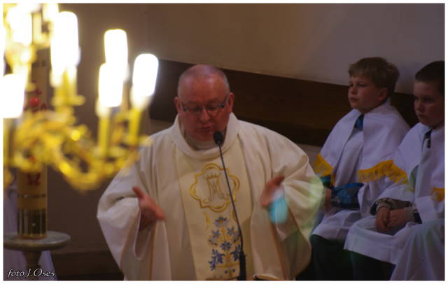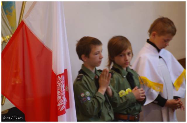 W dniu 3 maja 2013 r. o godz. 10.45 w uroczystość Najświętszej Maryi Panny Królowej Polski. proboszcz naszej parafii ks. Krzysztof Musiał odprawił Mszę św. w intencji umiłowanej Ojczyzny. Msza św. rozpoczęła się wprowadzeniem do świątyni przez ks. Krzysztofa przybyłych na uroczystość - pocztu sztandarowego OSP Kaźmierz oraz grupy zuchów i harcerzy. Wprowadzenie odbyło się przy śpiewie najstarszej polskiej pieśni religijnej, jaką jest „Bogurodzica”. Ks. proboszcz w swoim kazaniu zwrócił uwagę na to, że nasi przodkowie często zwracali się do Boga o pomoc w odzyskaniu upragnionej wolności i niepodległości. Przypomniał również kilka wydarzeń z kart historii naszego narodu, wskazując jak to wielcy władcy Bogu i Matce Najświętszej powierzali losy naszej Ojczyzny. Król Jan Kazimierz 1 kwietnia 1656 r. w katedrze lwowskiej ślubował przed wizerunkiem Matki Bożej Łaskawej: „Ciebie za patronkę moją i za królową państw moich dzisiaj obieram”. Jak wiemy przez wiele stuleci rodacy nasi wszelkie nadzieje pokładali w Matce Bożej za wstawiennictwem, której błagali Boga o pomoc w trudnych dla kraju czasach. Na zakończenie Eucharystii odśpiewano pieśń „Boże, coś Polskę”.