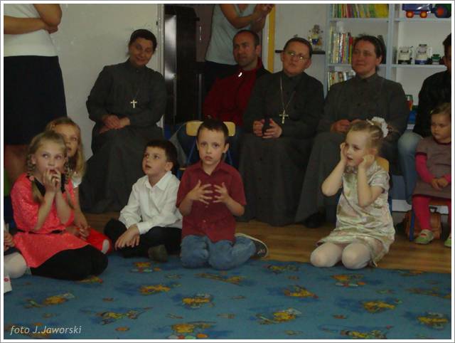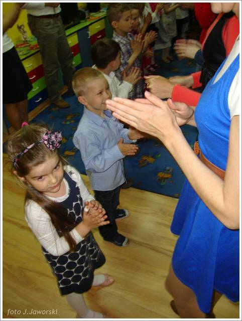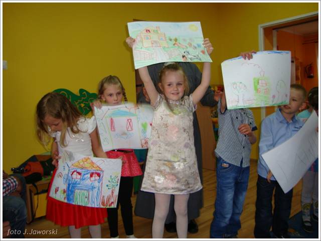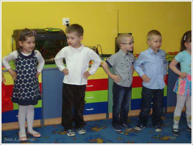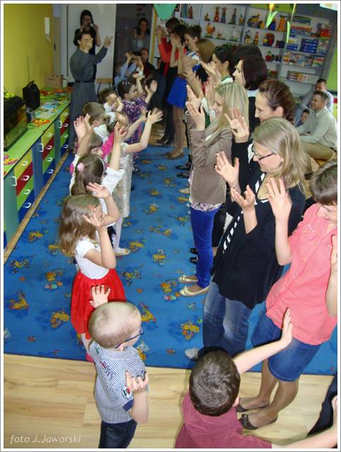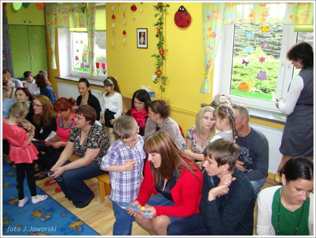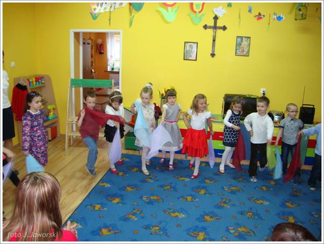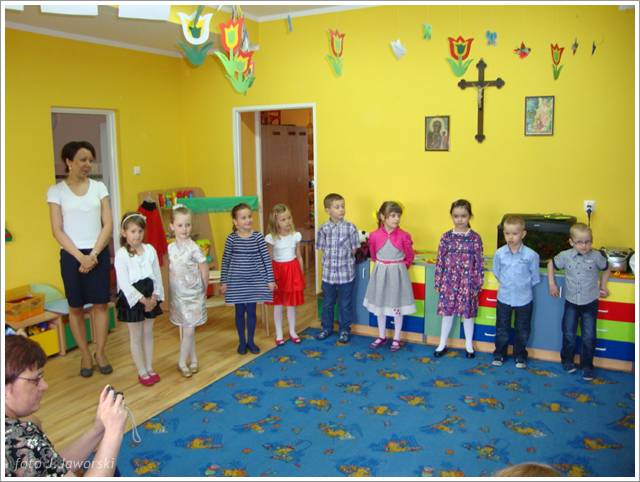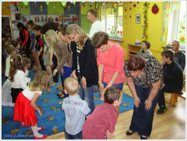 W dniu 12.05.2013 r. grupa Starszaków świętowała Dzień Mamy i Taty. Z tej okazji dzieci zaśpiewały dla rodziców piosenki: „Wysłała mnie matka”, „Czerwone jabłuszko”, do której to dzieci pięknie zatańczyły, wykorzystując kolorowe chusty. Następnie przedszkolaki wykonały piosenkę po angielsku oraz nazywały i pokazywały części ciała w tym języku. Starszaki przygotowały również koncert dla rodziców, podczas którego prezentowały piosenki, wierszyki i tańce według własnego pomysłu. Po części artystycznej rodzice wraz z dziećmi wspólnie się bawili, a także wykonali pracę plastyczną pt. „Mój dom”. Uroczystość zakończyła się wręczeniem laurek rodzicom oraz słodkim poczęstunkiem.