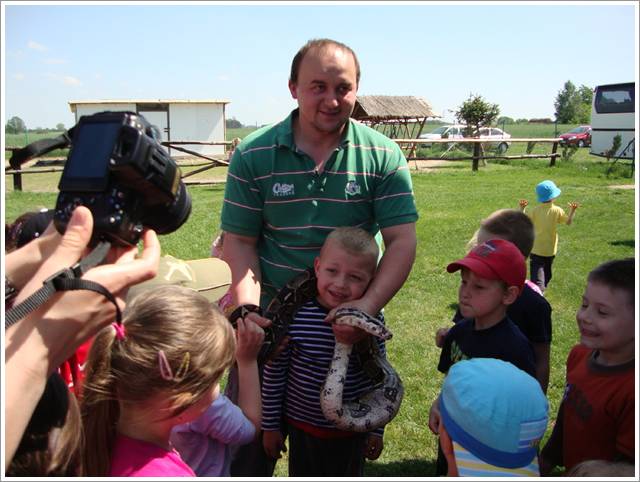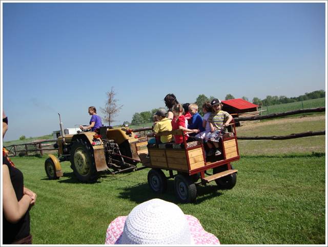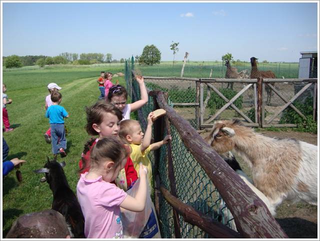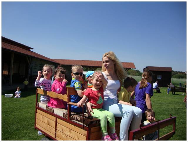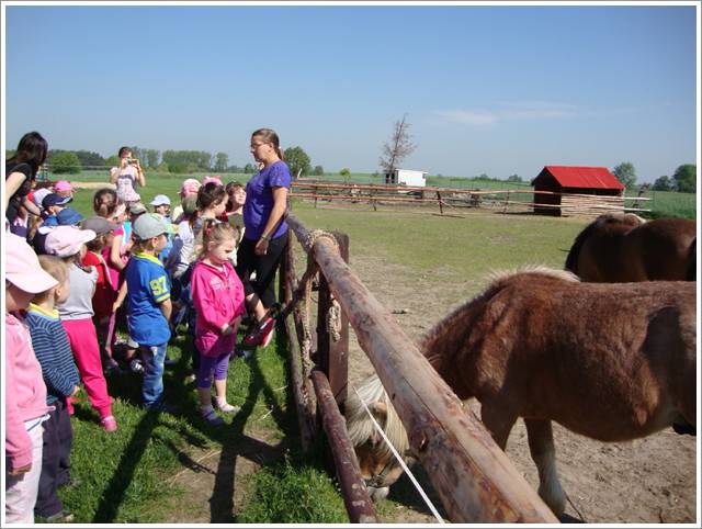 W dniu 16.05.2013 r. odbyła się wycieczka wszystkich grup przedszkolnych do gospodarstwa agroturystycznego „Wesoła zagroda” w Witoldzinie. Na wstępie przedszkolaki zostały przywitane przez panią Asię, która pokazała i opisała dzieciom wszystkie zwierzęta znajdujące się w gospodarstwie. Dzieci miały okazję zapoznać się ze zwierzątkami mieszkającymi w "Wesołej zagrodzie" Przedszkolaki chętnie karmiły zwierzęta przyniesionym z domu jedzeniem. Następnie dzieci bawiły się na placu zabaw. Dużą atrakcją okazała się przejażdżka bryczką wokoło Wesołej zagrody, a także możliwość zobaczenia i zrobienia sobie zdjęcia z wężem boa. Przedszkolakom bardzo podobała się pełna atrakcji wyprawa do Witoldzina.