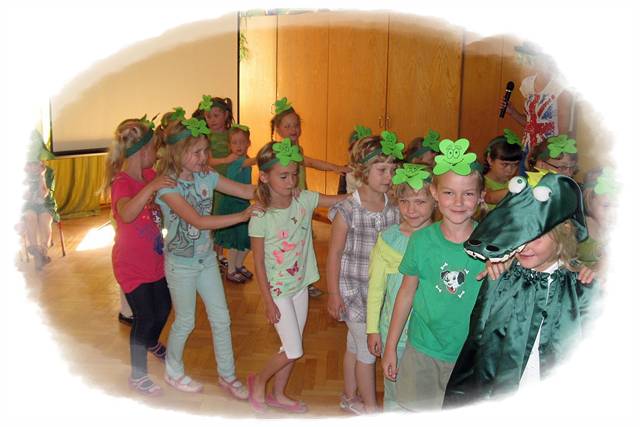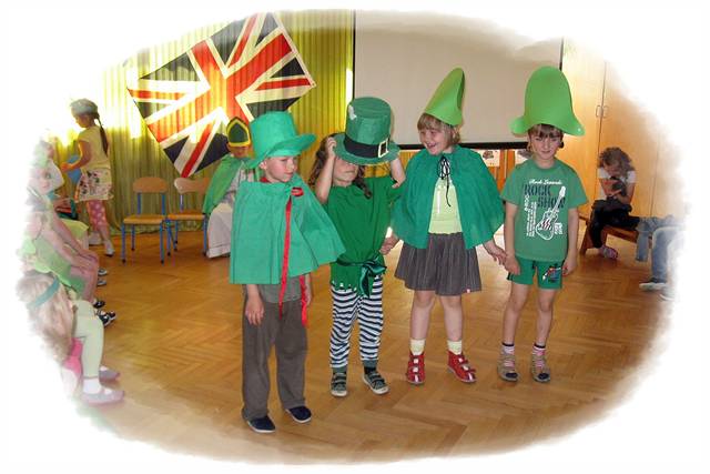 Dzieci z Przedszkola "Krasnal Hałabała" w Kaźmierzu wraz z nauczycielką j. angielskiego zaprosiły swoje koleżanki i kolegów z klas I a i I b Szkoły Podstawowej w Kaźmierzu do odkrywania Zjednoczonego Królestwa Wielkiej Brytanii i Irlandii Północnej. Młodsze dzieci przygotowały uczniom zielone koniczyny - symbol Irlandii, która była głównym celem podróży. Dzieci obejrzały prezentacje multimedialną i aktywnie uczestniczyły w zabawach z muzyką. Absolwenci przedszkola odkryli kilka ciekawostek na temat obcojęzycznego kraju, a także przypomnieli sobie piosenki śpiewane podczas ubiegłorocznych zajęć w przedszkolu. W oczach niektórych dzieci można było zobaczyć jak bardzo tęsknią za pobytem w przedszkolu - beztroską zabawą. Cieszymy się, że mogliśmy razem spędzić ten czas.