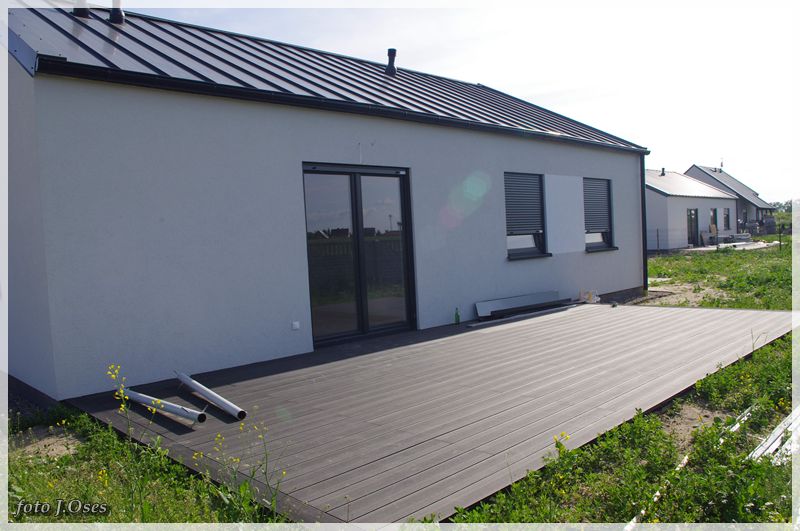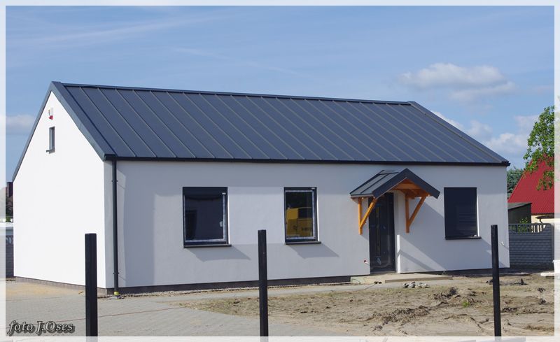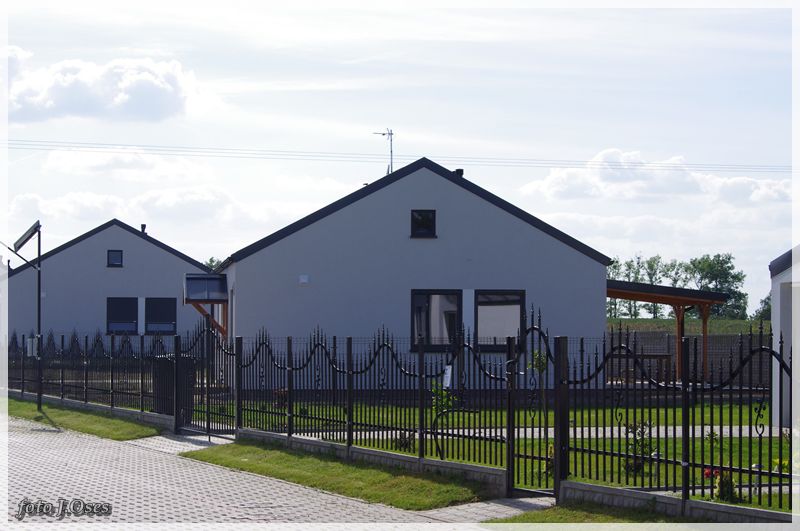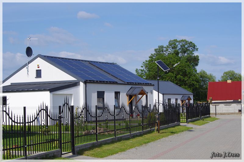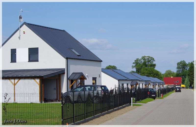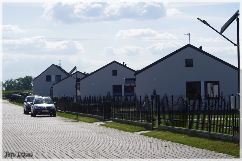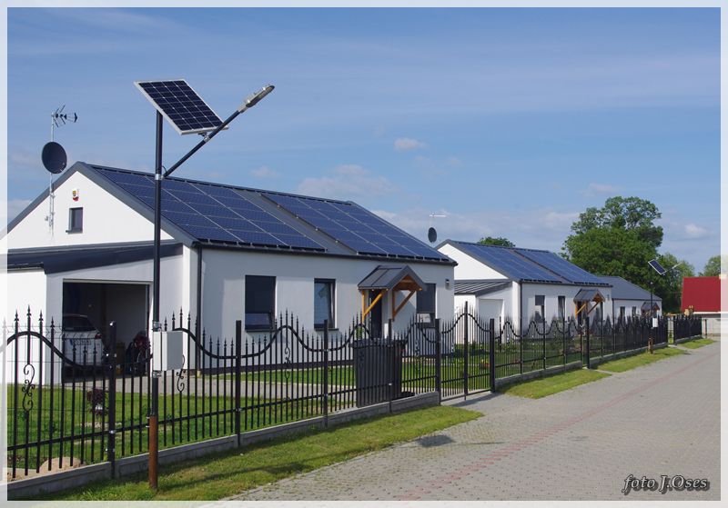 Jest to możliwe, ponieważ wspomniane budynki powstały tzw. nanotechnologii z elektrowniami słonecznymi, inteligentnym ogrzewaniem infra red oraz samouczącym się podgrzewaczem wody użytkowej. W tej sytuacji nie potrzeba przyłącza gazowego, a przyłącze elektryczne służyć będzie tylko jako bufor. Na taką technologię postawiła firma budowlano – instalacyjna FILAR Zenona Augustyna. Obecnie kilka domów jest już gotowych w tym część jest już zamieszkała. Powierzchnia użytkowa parterowego domu na działce 630 m² wynosi około 80 m². Są to domy tzw. pod klucz. Kuchnie i łazienki wyposażone mieszkania posiadają również garderoby. Działki są ogrodzone na terenie chodniki, wjazd i opaska wokół budynku z otoczaka. Osiedle jest skanalizowane. Przy każdym domu jest obszerny taras 32 m². Są to domy częściowo samo spłacające, czyli zero energetyczne plus. Wykonawca Zenon Augustyn zapewnia, że oferta tanich w eksploatacji domów skierowana jest głównie dla ludzi młodych na dorobku. Jak już ktoś bierze kredyt na dom i będzie spłacał go przez długie lata to niech, chociaż nie wydaje kolejnych dużych kwot na jego utrzymanie mówił w rozmowie ze mną pan Zenek. Odwiedzając to nowe osiedle miałem wrażenie, że przeniosłem się nieco w czasie. Na dachach budynków zainstalowane ogromne panele fotowoltaiczne wytwarzające energię elektryczną z promieniowania słonecznego. Nowe osiedle, a już przed domami ulica (jeszcze bez nazwy) wybrukowana kostką. Na ulicach latarnie ledowe zasilane własną energią. Dojazd, choć w tej chwili możliwy tylko od ul. Topolowej jest całkiem niezły, bo droga, póki co jeszcze gruntowa została dobrze utwardzona. Jak zapewnił mnie p. Zenek niebawem dojazd do osiedla będzie również możliwy od strony ul. Nowowiejskiej. Docelowo na przylegających działkach (tzw. osiedle słoneczne) ma powstać 20 podobnych domów i dalsze 72 domy w tej samej technologii powstaną na sąsiednim osiedlu (tzw. osiedle słoneczne II) z wjazdem od ul. Topolowej. Jest to bez wątpienia najbardziej ekologiczne osiedle w naszej gminie i chyba długo trzeba by szukać podobnego w najbliższej okolicy.