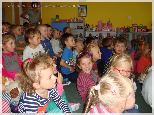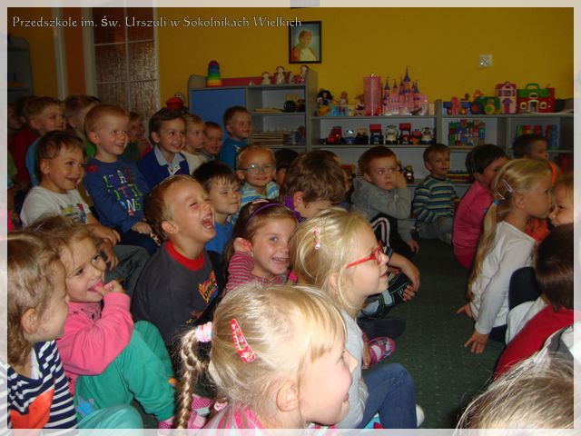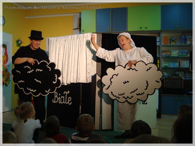 Ostatni dzień września przedszkolakom z Sokolnik Wielkich umilił spektakl Teatru Pod Orzełkiem zatytułowany „Czarne i białe”. Wspomniany Teatr tworzony jest przez zespół profesjonalnych aktorów lalkarzy, na czele z założycielem Mariuszem Orzełkiem. Białostocka grupa zajmuje się tą sztuką z powodzeniem w Polsce i za granicą. Spektakl utrzymany w konwencji kabaretu, uciekał się do oryginalnej gry z tradycją literatury dziecięcej, a uczestników pobudzał do twórczej, biało-czarnej gry skojarzeniowej.