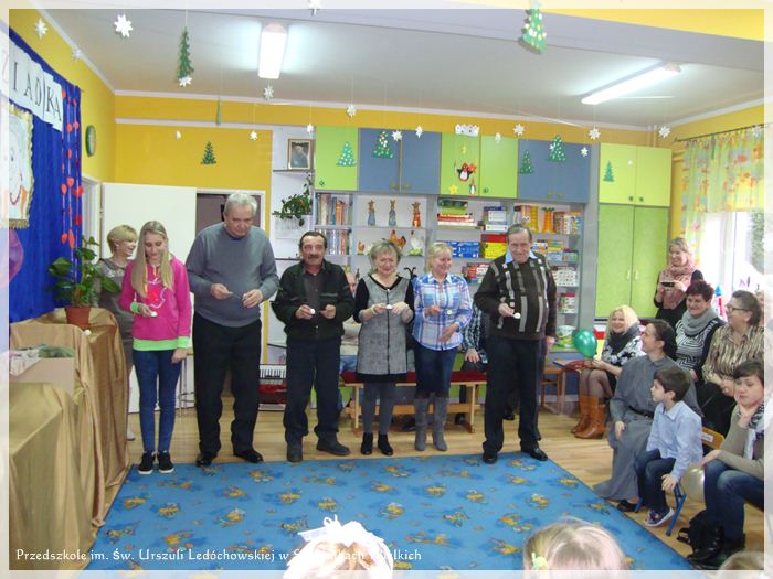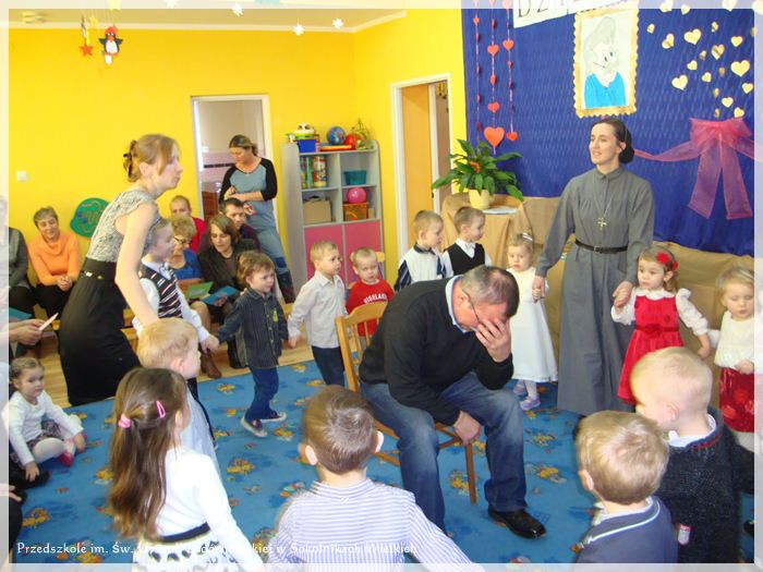 Grupa „Średniaków”, wśród bogactwa strojów, ciekawie zainscenizowała przedstawienie teatralne o „Jarzębince”, a „Starszaków” świetnie sprawdziła się w roli tancerzy, prezentując układ do Polki łęczyckiej. Kulminacją spotkań były wspólne zabawy Dziadków z wnukami, podczas których nie brakowało śmiechu i wzajemnie okazywanej miłości. Po części artystycznej, wnuki wraz z Dziadkami mogli zasiąść do stołu, by przy kawie, herbacie i słodkościach przygotowanych przez rodziców, wspólnie celebrować tę piękną uroczystość. Podczas świętowania w grupie „Średniaków” można było wysłuchać akordeonowych improwizacji jednego z dziadków i dać się ponieść muzyce w tanecznych duetach. Ten wyjątkowy weekend upłynął w atmosferze miłości, wzajemnej życzliwości i radości. Oby każdy dzień skłaniał do dziękowania za Dobro, jakim są nasze babcie i dziadkowie.