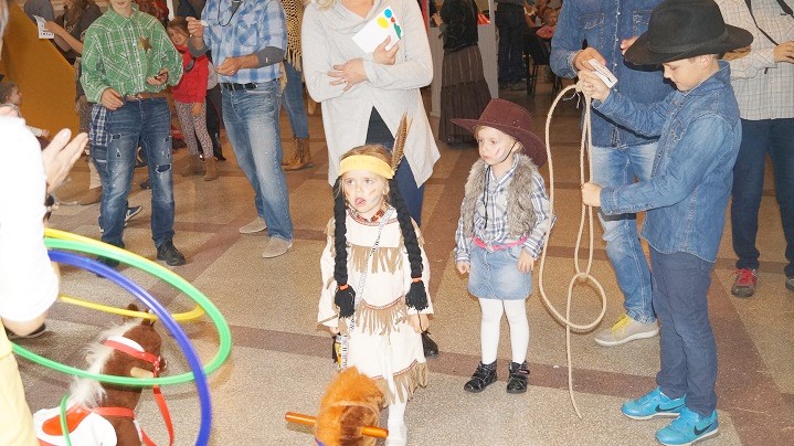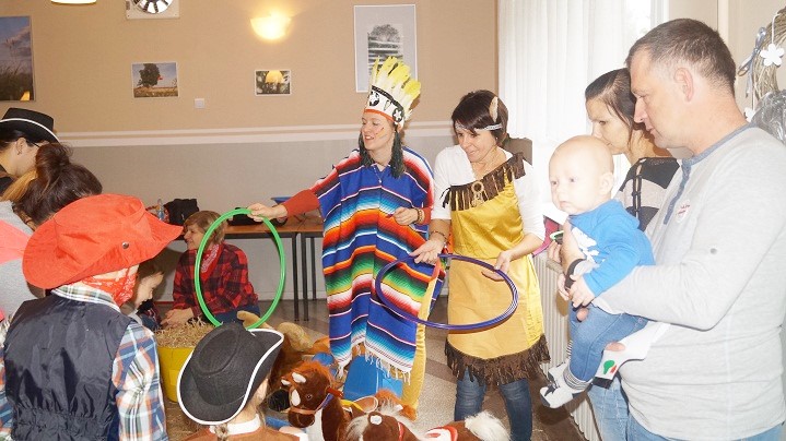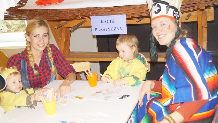 8 października dzieci z Przedszkola Niepublicznego im. św. U. Ledóchowskiej i ich rodzice bawiły się w „dziki zachód”. Wnętrze świetlicy wiejskiej w Sokolnikach Małych zmieniło się w westernowe miasteczko pełne atrakcji i niespodzianek. Przyciągały wzrok elementy wystroju takie jak: kolorowy wigwam, konie (na biegunach), kaktusy (wykonane przez dzieci) oraz stanowiska konkursowe w plastycznej oprawie dopełniającej klimat spotkania. Charakter imprezy podkreślili też uczestnicy, przebierając się za Indian i kowbojów. Każdej rodzinie towarzyszyły radosne emocje podczas zbierania punktów np. za celne rzuty kapeluszem i lassem. Trzeba było także przyczepić gwiazdę szeryfa i znaleźć ukryte w słomie złoto.
