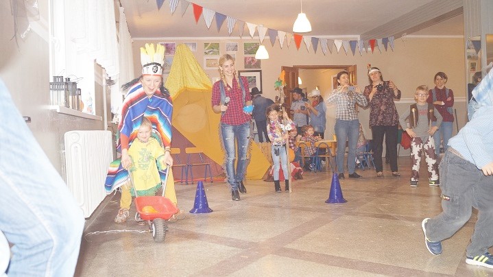 Głośny doping wspierał zawodników pchających taczki z dyniami. Był również czas na podjadanie smakołyków z piknikowych koszyków. Na koniec z piniat posypały się cukierki, a dzieci wraz z dorosłymi tańczyły w indiańskim kręgu przyjaźni.
