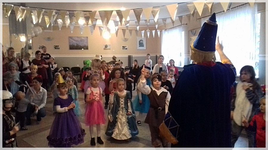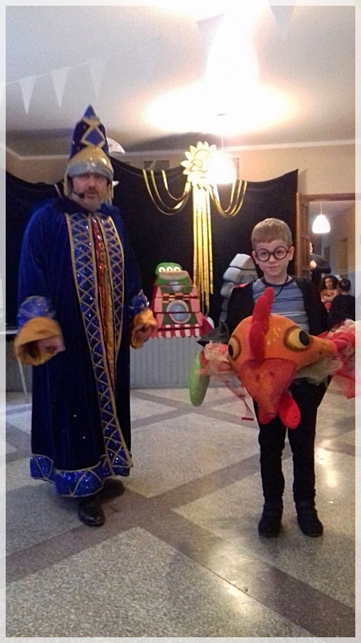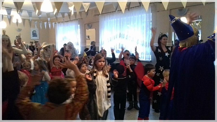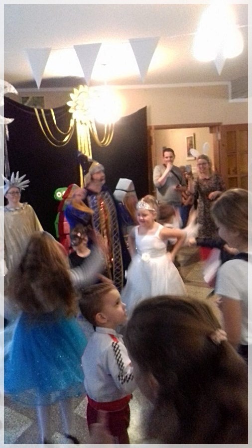Następnie dzieci mierzyły się z zadaniem zbudowania rakiety z klocków- mega puzzli oraz musiały pomóc aniołkom wysprzątać gwiazdy z Drogi Mlecznej. Uczestnicy zabawy dolecieli na księżyc gdzie dosiadali kogutów Pana Twardowskiego, a na obcej planecie spotykali przyjaznych kosmitów. Impreza zakończyła się wyborami Gwiazdy i Gwiazdora Balu. Nie zabrakło kosmicznego paliwa- słodkiego poczęstunku, który dopomógł wszystkim bawić się wspaniale – wręcz nieziemsko!