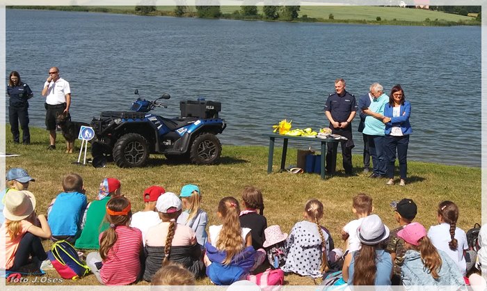 We wtorek 12 czerwca 2018 r., na terenie Agro-Zalewu w Radzynach miała miejsce kolejna edycja akcji „Bezpieczne wakacje”. Organizatorem imprezy było Starostwo Powiatowe w Szamotułach wspierane przez Policję i Państwową Straż Pożarną. Do Radzyn wraz ze swoimi opiekunami pojechali uczniowie klas I ze Szkoły Podstawowej im. Marii Dąbrowskiej w Kaźmierzu. Dzieci z uwagą wysłuchały ciekawych porad policjantów, którzy uświadamiali czego nie należy robić na wakacjach i jak reagować w przypadku zagrożenia.