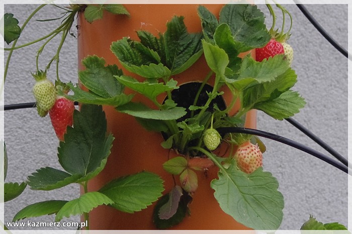 Dzisiaj temat dla ludzi, którzy mają ograniczony metraż w przydomowych ogródkach. Chciałbym zaproponować Wam uprawę truskawek w rurach. W moim ogródku rury stoją już trzeci sezon. W tym roku krzewy nieco przymarzły i szału z plonami nie ma, ale w ubiegłym roku było całkiem nieźle. Do stworzenia plantacji potrzebujemy dwumetrowe rury kanalizacyjne o średnicy minimum 160 mm, w których wiercimy otwory o średnicy około 6 cm. U mnie w 5 rurach mam po 15 otworów co daje 75 krzaczków. Rury wkopujemy w ziemię na około 50 cm, następnie otwory zaklejamy taśmą, a rurę napełniamy ziemią. Ważne jest, aby ziemię maksymalnie dobrze ubić, ponieważ kiedy wsadzimy w otwory sadzonki truskawek i zaczniemy je podlewać, pod ciężarem wody ziemia zacznie osiadać, a krzaczki poznikają nam w otworach. Wiem, co mówię, bo sam to przerabiałem ;)