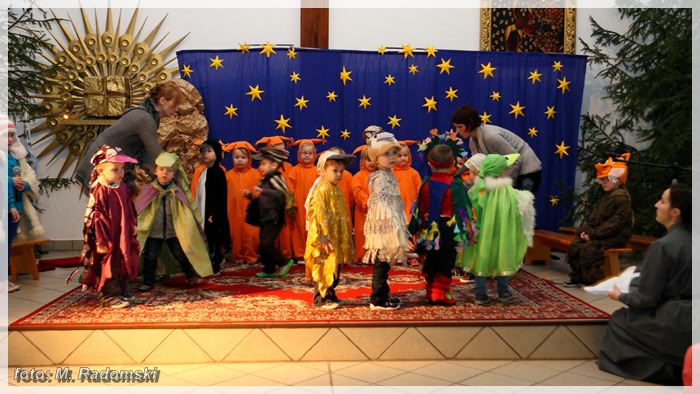 Tradycyjnie już, dzieci z Niepublicznego Przedszkola w Sokolnikach Wielkich przedstawiły 19. i 20 grudnia jasełka. Tym razem odbiegały one troszeczkę od konwencji. Oprócz pasterzy, królów i aniołów, do żłóbka przybyli również pies, kot, wilk, miś i wiewiórki. Oko mogło zachwycać się pięknymi strojami dzieci i złożonymi układami tanecznymi, a ucho wyszczególnionym tłem muzycznym, kolędami i pastorałkami. Dzieci ogromnie przeżywały swoje wystąpienie. Sądząc po burzy oklasków, wypadło ono jednak wyjątkowo. Jasna światłość, która rozbłysła nad Betlejem, jeszcze długo rozchodziła się w naszych sercach.