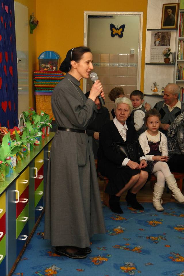 9 lutego 2013 r. do naszego przedszkola zawitali niezwykli goście. Byli to nasi dziadkowie. Maluszki wjechały ?pociągiem? do sali, gdzie siedzieli już uśmiechnięci goście. Na początek przywitaliśmy naszych dziadków piosenką "Całuski", która rozbawiła każdego. Następnie dzieci wraz z pomocą pani Asi przedstawiły wierszyk pod tytułem "Prezenty", ilustrując go przedmiotami, o jakich była mowa w wierszu. Na zakończenie części artystycznej dzieci zatańczyły i zaśpiewały piosenkę "Babciu, droga babciu". Wówczas nadszedł czas na podziękowania za miłość i okazywaną troskę swoim babciom i dziadkom wręczając im własnoręcznie zrobione kwiatki oraz laurki.