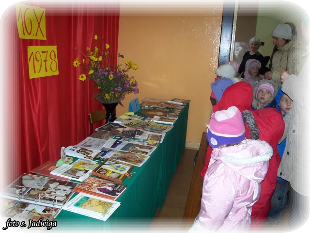 W piątek 16 października b/r roku obchodziliśmy 31 rocznicę wyboru kard. Karola Wojtyły na „Stolicę Piotrową”. Wcześniej w niedzielę 11 października wspominaliśmy natomiast jego osobę, a w zasadzie jego myśli, którymi nas pokrzepiał przez wszystkie lata swego pontyfikatu. Wspomnienie to odbywało się w ramach IX „Dnia Papieskiego” organizowanego przez fundację: Dzieło Nowego Tysiąclecia. Motywem przewodnim tegorocznych obchodów było hasło: „Jan Paweł II – Papież Wolności”. Do działań przypominających Jego postać dołączyły się dzieci ze Szkoły Podstawowej w Sokolnikach Wielkich. Co prawda nie zbierały pieniążków, by wspomóc wspomnianą fundację, ale zorganizowały one pod wodzą swych pań nauczycielek i katechetki s. Jadwigi „mini wystawę” poświęconą pamięci Ojca Świętego.