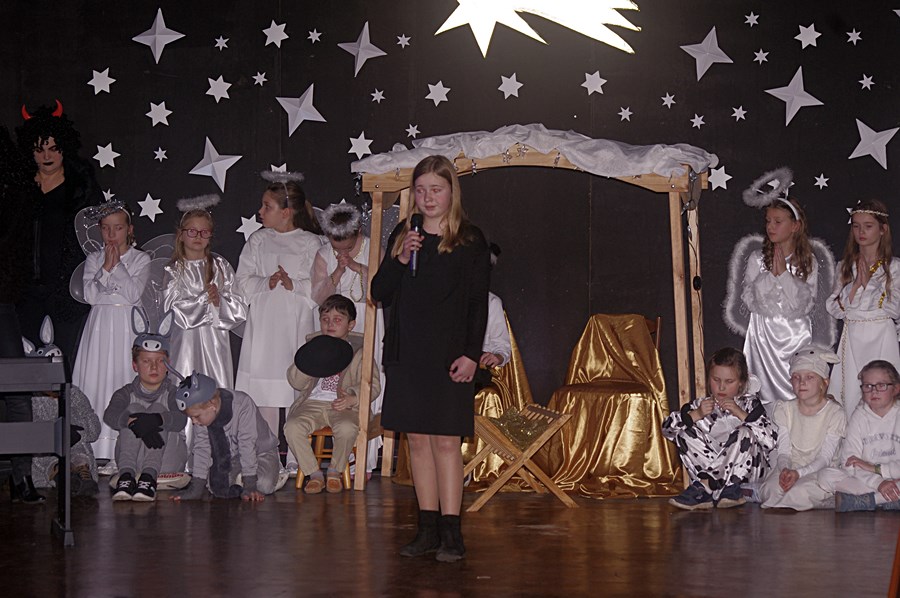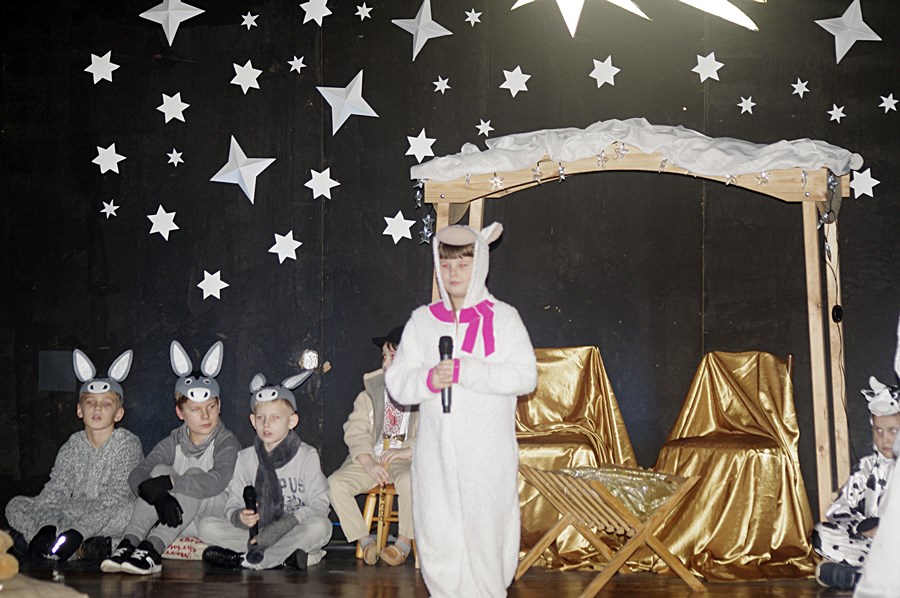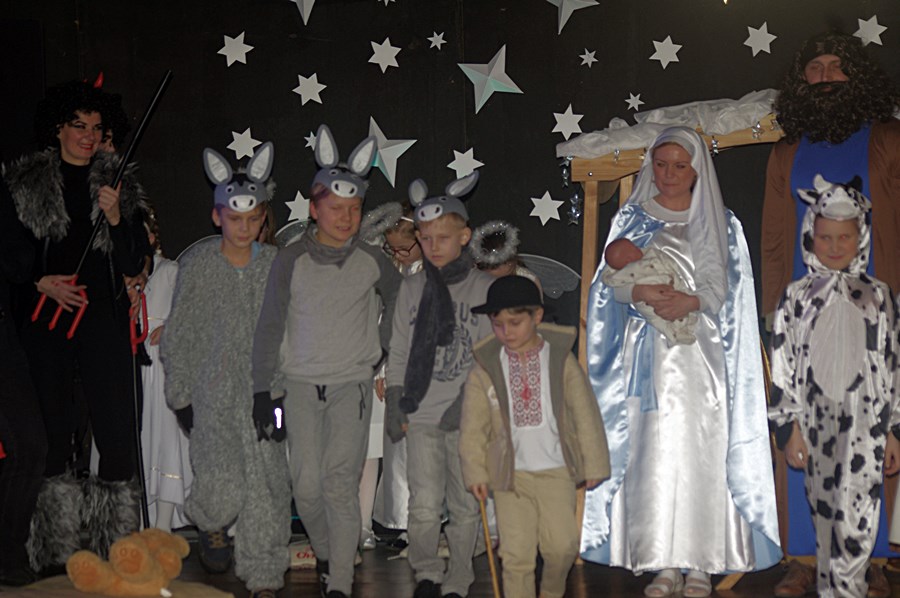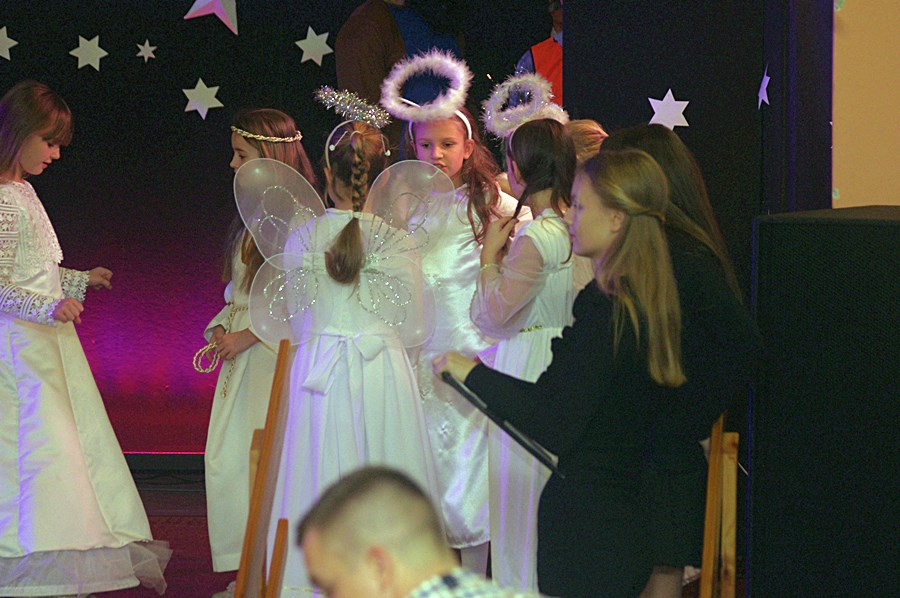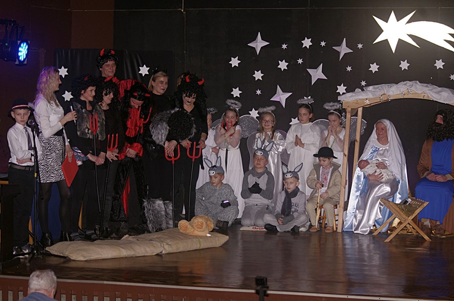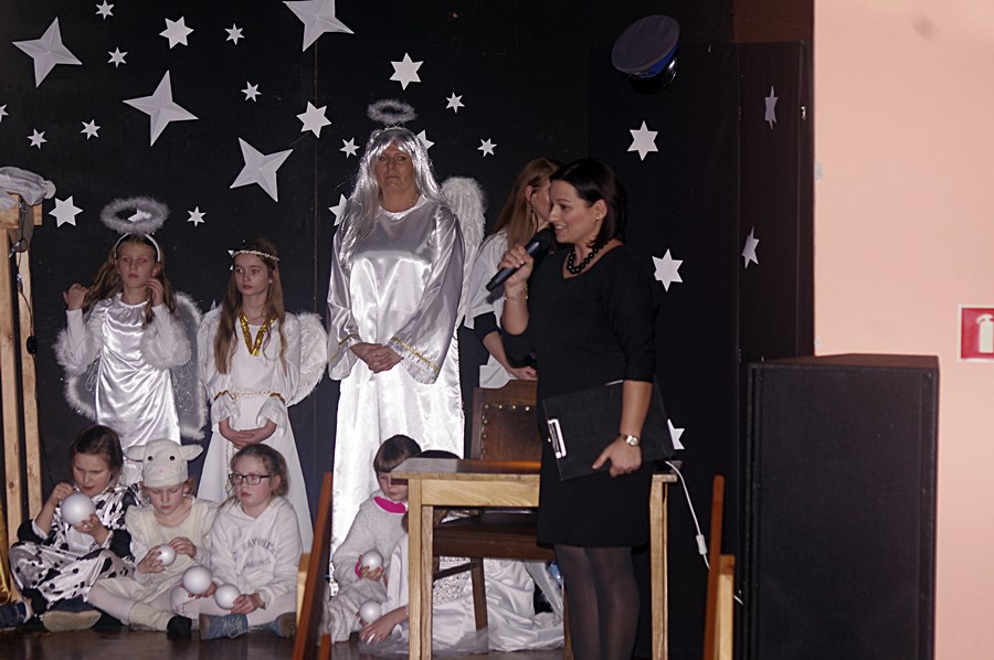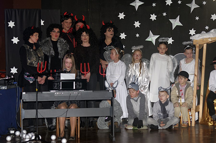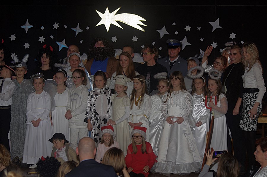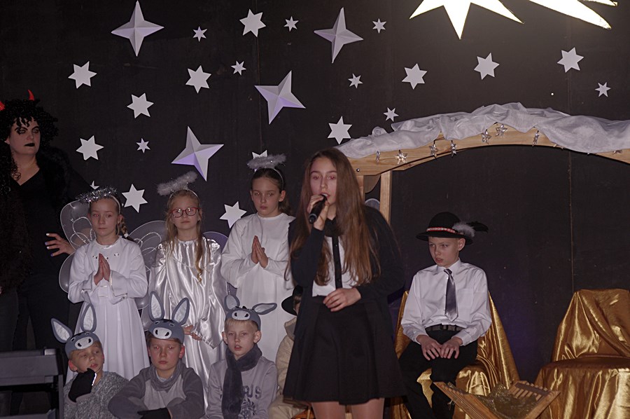 Jednym słowem sztuka przez duże S, ponieważ wraz z zabawnymi tekstami zachowano powagę wydarzenia, jakim było narodzenie Chrystusa. Tutaj duży ukłon w stronę autora scenariusza. Wielkie brawa należą się przede wszystkim małym aktorom i ich odważnym rodzicom, którzy stanęli chyba wyżej niż poprzeczka, którą im zawieszono. W drugiej odsłonie było niemniej ciekawie, z tym że nieco poważniej, ponieważ w repertuarze przedstawionym przez uczniów z różnych roczników przeważały kolędy i piosenki w językach polskim i angielskim. Tutaj uczniowie zdradzili przed publicznością swoje talenty muzyczne. Każdy występ nagradzany był gromkimi brawami. Brawami nagrodzono także osoby, które przygotowały i wsparły koncert, czyli; pp. Karolinę Kozłowską, Ewę Maćkowiak, Beatę Zdunek, Dominikę Nowaczyk i Roberta Winieckiego.