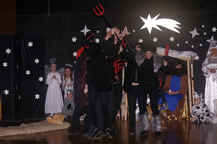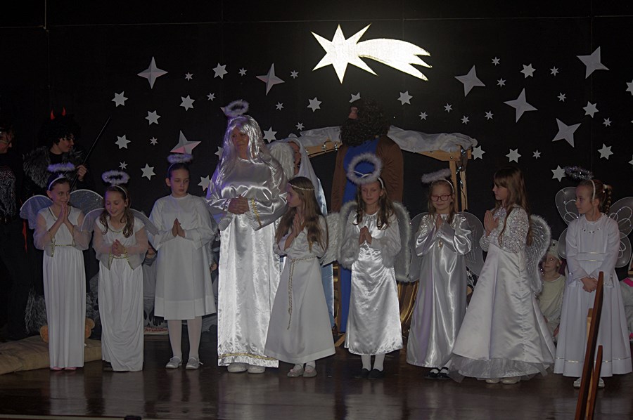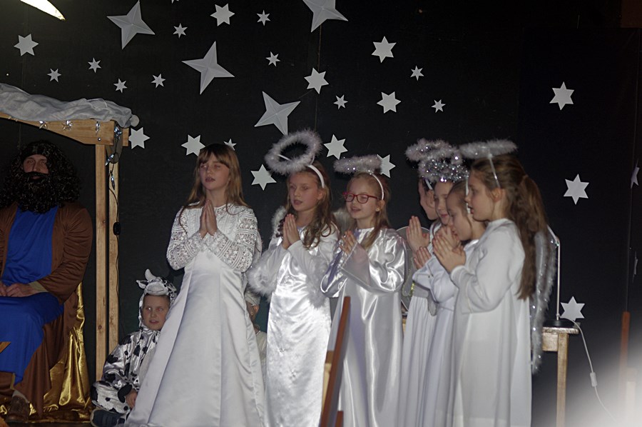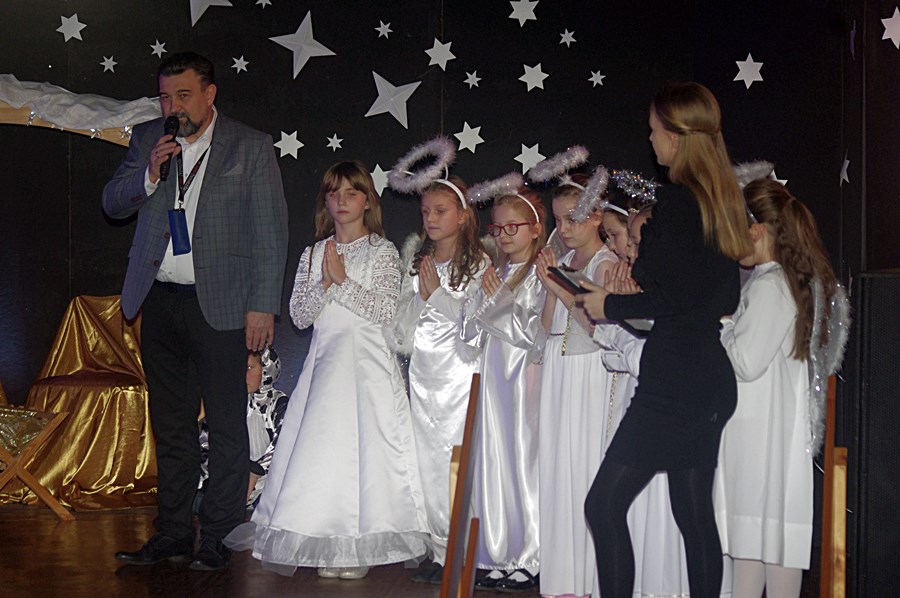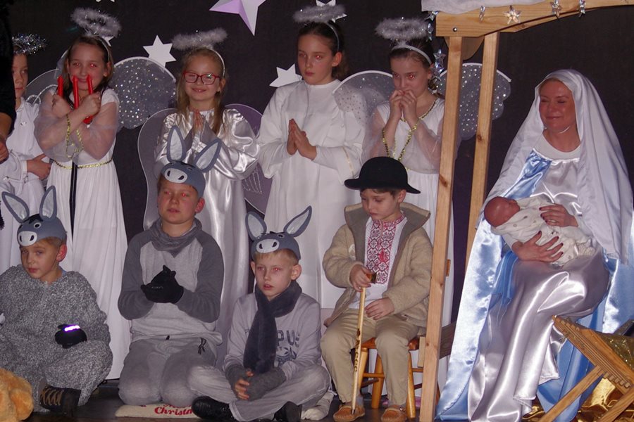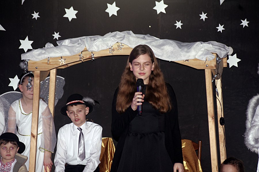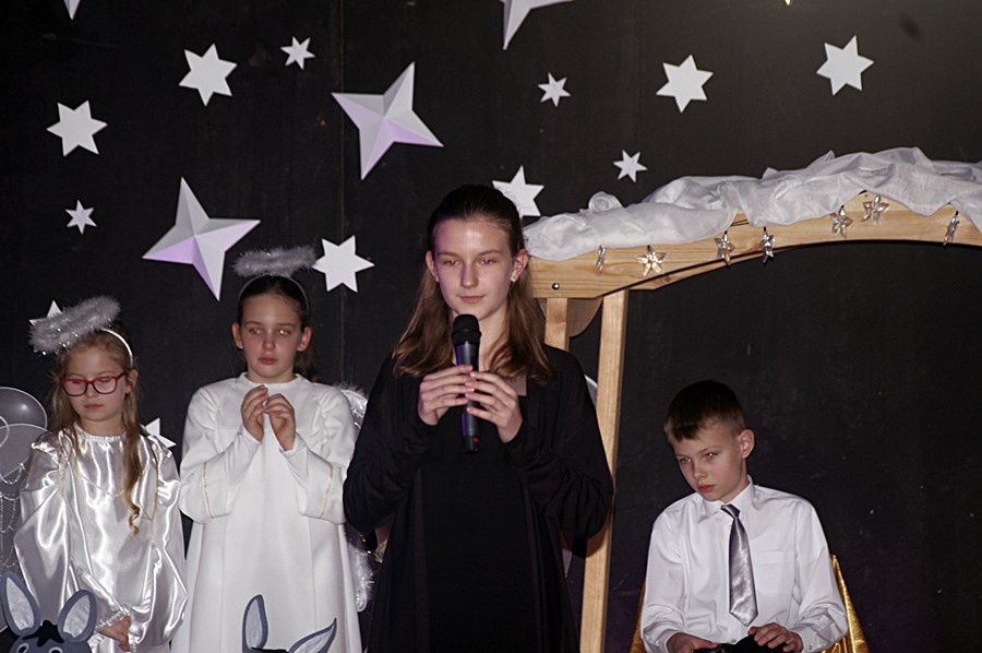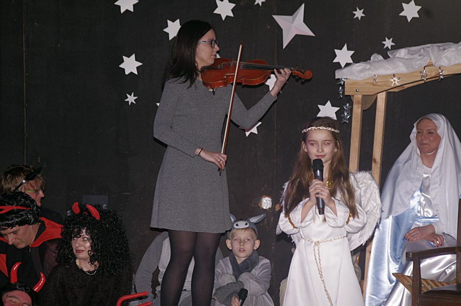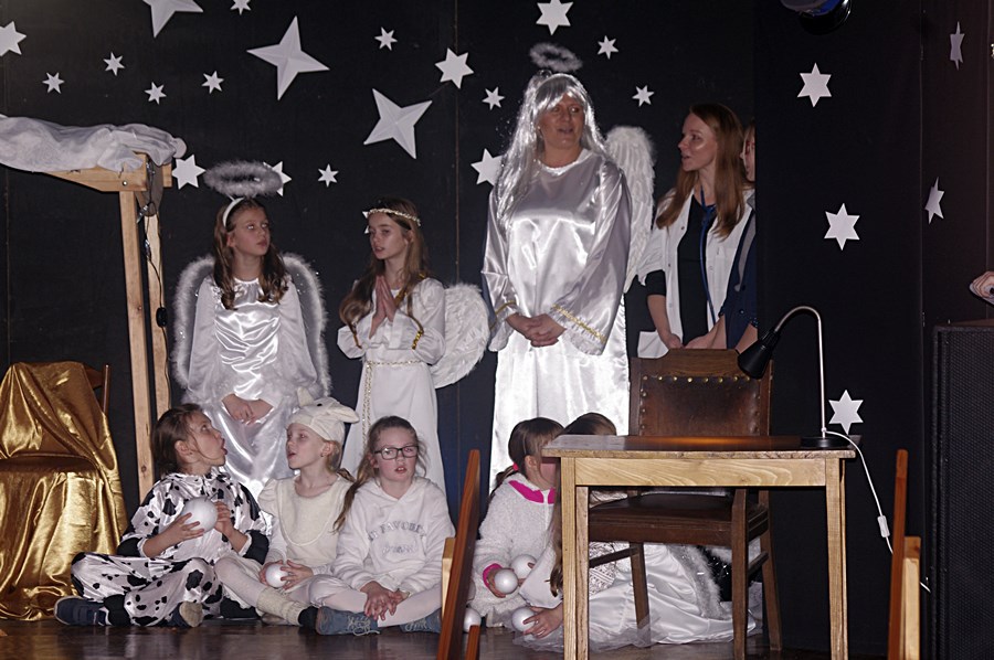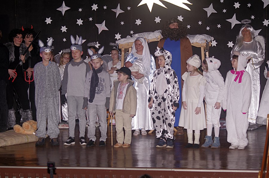 Jednym słowem sztuka przez duże S, ponieważ wraz z zabawnymi tekstami zachowano powagę wydarzenia, jakim było narodzenie Chrystusa. Tutaj duży ukłon w stronę autora scenariusza. Wielkie brawa należą się przede wszystkim małym aktorom i ich odważnym rodzicom, którzy stanęli chyba wyżej niż poprzeczka, którą im zawieszono. W drugiej odsłonie było niemniej ciekawie, z tym że nieco poważniej, ponieważ w repertuarze przedstawionym przez uczniów z różnych roczników przeważały kolędy i piosenki w językach polskim i angielskim. Tutaj uczniowie zdradzili przed publicznością swoje talenty muzyczne. Każdy występ nagradzany był gromkimi brawami. Brawami nagrodzono także osoby, które przygotowały i wsparły koncert, czyli; pp. Karolinę Kozłowską, Ewę Maćkowiak, Beatę Zdunek, Dominikę Nowaczyk i Roberta Winieckiego.