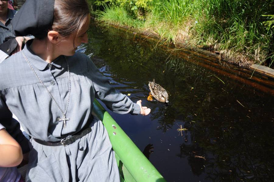 O godz. 8.00 – dnia 22 VI podążaliśmy do miejscowości Gajów, gdzie znajduje się Gospodarstwo Agroturystyczne „Dom na Wzgórzu”, położone w Sudetach Środkowych niedaleko czeskiej granicy. To właśnie tam korzystaliśmy z gościnności właścicielki obiektu. Domowe, zdrowe wyżywienie, nocleg, malownicze widoki, cisza i spokój, czyste powietrze to wspaniałe warunki do aktywnego wypoczynku z dziećmi. Zwiedziliśmy Szczeliniec Wielki (919 m n.p.m.) - najwyższy szczyt Gór Stołowych. Szczeliniec imponuje ilością i różnorodnością rzeźby skalnej. W wyniku wietrzenia powstała tam grupa skał o kształtach podobnych do zwierząt i ludzi. Można tam zobaczyć "Mamuta", "Słonia", "Kwokę", "Wielbłąda" i wiele innych. Najwyższym punktem Szczelińca jest skała zwana Fotelem Pradziada, na którą wchodziliśmy po metalowych schodkach. Z tarasów widokowych mogliśmy podziwiać panoramę na większość pasm w Sudetach. Ach cóż to były za piękne widoki. Kolejnym dniem naszej wycieczki były Skały Adrszpaskie położone są na południowym skraju wioski Adrszpach w Narodowym Rezerwacie Przyrody "Skały Adrszpasko-Teplickie". Już od samego wejścia, tuż przy kasie oglądaliśmy ciekawe formacje skalne i tuż przed wkroczeniem w miasto skał przechodziliśmy obok wyrobiska po byłej piaskowni zalanego wodą. W turkusowej tafli odbijają się okoliczne skały i drzewa, które sprawiają, że widok jest tak malowniczy, jak w bajce. Droga, którą przemierzaliśmy wraz z przewodnikiem prowadziła przez las, gdzie oglądaliśmy Fotel Karkonosza, Fotel Babci Karkonosza, Głowę Cukru itd. Przez wąskie przejścia i po kładkach z desek szliśmy między pionowymi skałami, aby dotrzeć do Małego Wodospadu i Wielkiego Wodospadu. Po metalowych schodach dotarliśmy do Skalnego Jeziorka, po którym pływaliśmy łódką z przewodnikiem, który pokazał nam Wodnika Szuwarka, Topielca, Słonia i kilka innych atrakcji, które można zobaczyć dzięki własnej wyobraźni. Ruszyliśmy dalej pośród skał, które co kilka metrów zaskakują inną formą i ukształtowaniem. W niedzielę, każdy z uczestników niosąc naręcza dobrych uczynków oraz własnych intencji uczestniczyliśmy w Mszy Św. w Sanktuarium Matki Bożej Wambierzyckiej Królowej Rodzin. Będąc w Wambierzycach u podnóża Kalwarii zwiedziliśmy Ruchomą Szopkę, w której poruszające się kolorowe figurki wzbudziły w każdym z nas ogromny podziw i zachwyt. Mogliśmy także odpocząć w Parku Zdrojowym w Kudowie-Zdroju, u podnóża Góry Parkowej, gdzie znajduje się Pijalnia, z której wydaje się wody z trzech źródeł. Jest to najładniejsza i największa pijalnia na Dolnym Śląsku. Tak szybko minęły te dni, pełne atrakcji turystycznych. Już czekamy na kolejną wyprawę. W imieniu dzieci, rodziców podziękowaliśmy właścicielce obiektu agroturystycznego „Dom na Wzgórzu” w Gajowie za mile spędzone chwile, siostrze Barbarze za zorganizowaną wspaniałą wycieczkę, rodzinną atmosferę, życząc siostrze, aby miała zawsze tyle optymizmu, pogody ducha czerpanej z miłości do naszego Pana, aby żadna siła nie przyćmiła blasku obranej przez siostrę drogi umiłowania Pana Jezusa dając radość dzieciom, a z potoków i wodospadów górskich niech spłynie lawina łask bożych. Szczęść Boże Siostro! Niech Bóg Jedyny prowadzi Siostrę każdego dnia! Wycieczka była bardzo udana, pogoda nam dopisała. Dobry Bóg i Najświętsza Panienka czuwali nad nami, otaczali nas swoją opieką i prowadzili nas bezpiecznie na każdy szlak turystycznej wyprawy.
