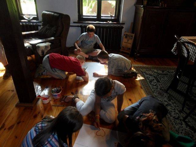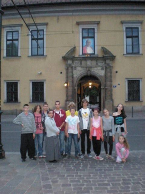 W dniach 3 – 7 lipca 2012 r., w ramach pracy świetlicy „Przystań u Anioła” dzieci wyjechały na letni wypoczynek do Gębic. Miejscowość ta jest położona w województwie wielkopolskim, w powiecie czarnkowsko-trzcianeckim. Koloniści zamieszkali w domu, który jest prowadzony przez Zgromadzenie Sióstr Felicjanek. Na co dzień mieści się tu Ośrodek pedagogiczno – rehabilitacyjny pod nazwą „Nasz Dom”. Ze strony sióstr było zapewnione zakwaterowanie, wyżywienie oraz opieka medyczna. Każdego dnia dzieci mogły korzystać w godzinach przedpołudniowych z basenu, jaki znajduje się w tym ośrodku, co stanowiło prawdziwą radość. Oprócz zabawy w wodzie dzieci również korzystać mogły z mieszczących się tu boisk i placów zabaw. Dzięki temu cały pobyt obfitował w liczne gry i zabawy sportowe na świeżym powietrzu, jednak największą atrakcją okazała się gra w „dwa ognie”. Wieczory to wspólne oglądanie filmów i kreskówek. Oprócz tego dzieci przygotowały również mini teatrzyk, który opowiadał o przygodach kotków. Scenariusz oraz dekorację i charakteryzację wymyśliły i wykonały samodzielnie. Nie zbrakło również zajęć plastycznych oraz tzw. gier stolikowych, które najlepiej sprawdziły się podczas jednego, jedynego dnia niepogody, jaki trafił się podczas tego wyjazdu! Oprócz zajęć w macierzystym ośrodku zwiedzano także okolicę w tym również „Gębiczyńskie Gniazdo”, czyli ośrodek prowadzony przez Fundację „Gębiczyn”. Miejsce to jest o wyjątkowej urodzie. Swą nazwą nawiązuje do urokliwej wsi Gębiczyn, która z kolei jest położona w otulinie rezerwatu „Źródliska Flinty” na skraju Puszczy Nadnoteckiej. „Siedlisko” to, jak sami o sobie mówią ludzie fundacji, przyciąga bardzo dzieci i nie pozostaje bez echa u dorosłych. O jego atrakcyjności decydują duże i malownicze przestrzenie jak również sprytnie wkomponowane w ten krajobraz elementy małej architektury oraz rzeźby. Są one przy tym nowoczesnymi w formie i idealnie wpasowują się w wiejski lub leśny klimat nawiązując w ten sposób do lokalnej tradycji. Dzieci były bardzo zachwycone zwiedzając ścieżki edukacyjne. Były to m.in. plenerowa pracownia plastyczna „Art Wiata” oraz wystawy: "Europejski Krąg" (to galeria rzeźb, przedstawiających symbolicznie przedstawicieli państw należących do Unii Europejskiej) oraz ”Cztery Pory Roku” (to stała ekspozycja rzeźb wykonanych w drewnie). Oprócz zwiedzania koloniści wzięli udział w warsztatach, jakie gospodarze przygotowali z tej okazji, czyli - dla każdego coś miłego i … ciekawego. Pierwszy warsztat nosił podtytuł drugie życie gliny. Tu każdy mógł kształtować własnoręcznie glinę wg swojej koncepcji i fantazji i jednocześnie poznać technikę pracy z tym tworzywem. Druga część dzieci z kolei zamieniła się w plastyków i bacznych obserwatorów życia. Najpierw musiały one narysować piękne kolorowe serca, by z kolei na nich wpisać trzy pozytywne cechy charakteru wybranej przez siebie osoby z koloni. Trzecia grupa gotowała natomiast zupę ze świeżego ogórka. Jak się okazało był to warsztat kształcenia pamięci i koncentracji. Oczywiście na jego zakończenie odbyła się degustacja przygotowanej zupy a jej receptura zostanie z pewnością wykorzystana przez uczestników szkolenia już w swoich rodzinnych domach. Spotkania warsztatowe zakończyły się biesiadowaniem przy ognisku, gdzie pieczono kiełbaski oraz smakowano przy tym pyszne drożdżówki. Ostatnim akcentem tej wakacyjnej eskapady był „Piknik nad rzeką”. Odbył się on 07 lipca w Czarnkowie nad rzeką Noteć a relację z jego przebiegu już zamieściliśmy wcześniej. Również atrakcyjny był wypad do Krakowa, który tylko z nazwy okazał się wyjazdem do tego historycznego miasta. Odbył się on w dniach 9 -14 lipca 2012 r. i został zorganizowany przez s. Beatę w ramach prowadzonej przez siebie świetlicy. Uczestnicy tej eskapady zakwaterowani zostali w centrum miasta w kamienicy przy ulicy Biskupiej, która należy do Zgromadzenia Urszulanek. Po przyjeździe na miejsce i wypakowaniu bagaży opiekunowie zorganizowali spotkanie integracyjne. Dzięki temu młodzież mogła lepiej się poznać oraz miło spędzić czas. Kolejne dni to już tylko realizacja planu wycieczki, która obejmowała zwiedzanie wielu bardzo ciekawych miejsc. Na początek złożono wizytę w Zakopanem. Dzieci i młodzież o własnych siłach weszła na Gubałówkę. Stąd podziwiali górskie widoki a z powrotem zjechali kolejką linową. Pomaszerowali również główną arterią miejscowości, czyli Krupówkami i zobaczyli skocznię narciarską – Wielką Krokiew. Następnego ranka uczestnicy wyjazdu odwiedzili Wawel. Tu poznali jego bogatą historię, pospacerowali po krużgankach i zwiedzili krypty mieszczące się w jego podziemiach. Po zjedzeniu obiadu odwiedzili również Sanktuarium Bożego Miłosierdzia w Łagiewnikach, gdzie wzięli udział we Mszy świętej. Ponadto zwiedzili jeszcze celę świętej s. Faustyny Kowalskiej. Kolejnego dnia plan przewidywał odwiedziny w miejscach wyjątkowo tragicznych w historii naszego narodu. Zwiedzone zostały bowiem obozy koncentracyjne w Oświęcimiu oraz Brzezince, gdzie nazistowscy oprawcy wymordowali miliony ludzi. Młode pokolenie nie przeraziło się tej chwili i stawili dzielnie czoła, by zapoznać się z tą niechlubną przeszłością. Wykazali się przy tym wielką dojrzałością i szacunkiem wobec wymiaru tych miejsc pamięci. Po powrocie do Krakowa otrzymali jednak okazję, by zmienić swój nastrój. Wieczorny spacer po miejskich uliczkach i Krakowskim Starym Rynku miał rzeczywiście coś z magii. Urok rozświetlonych sukiennic oraz wież Kościoła Mariackiego wprawiał w zachwyt a zjedzony o tej porze dnia pyszny deser tylko pogłębił wspaniałość doznań tego letniego dzionka. Jeszcze tylko przemarsz na ul. Franciszkańską, ab