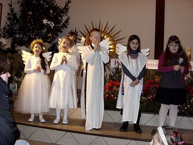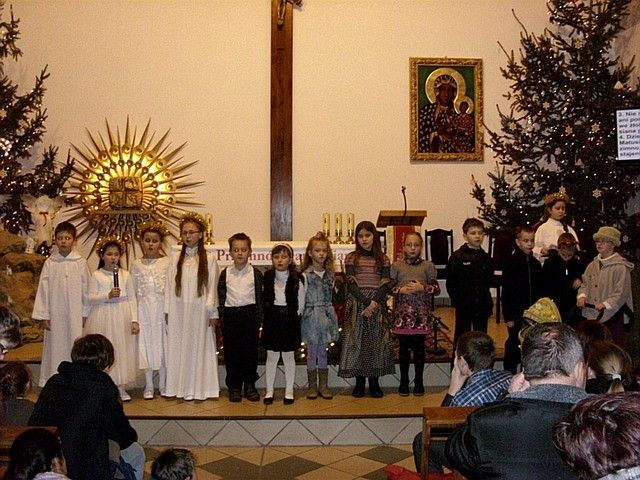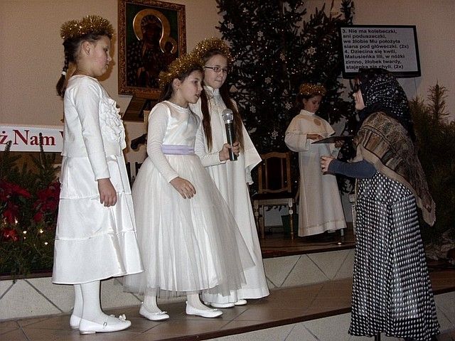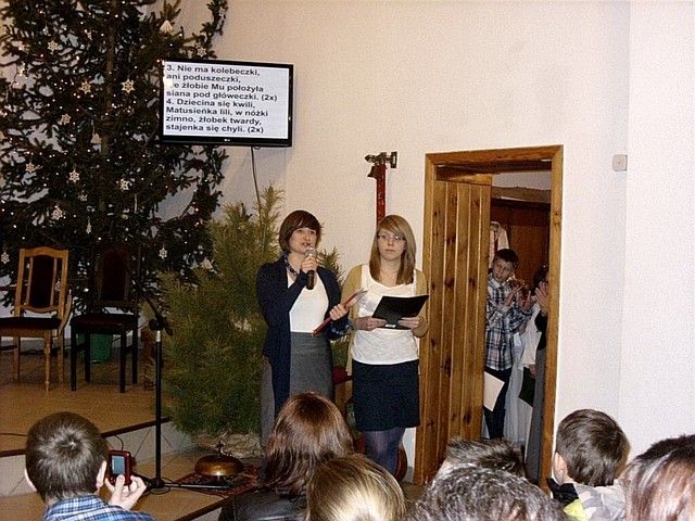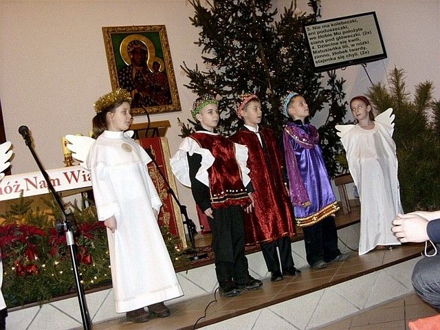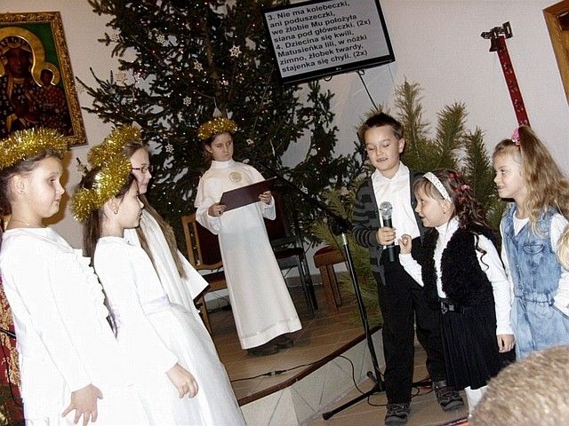 „W tym roku do naszej imprezy przystąpiło około czterdzieścioro wykonawców” - informuje mnie s. Beata Bok i kontynuuje – „jak zwykle na naszej imprezie zespoły i solistów nie oceniało żadne jury. Również z całą pewnością nie jest to eliminacja do Będzina, gdzie od nieomal dwudziestu lat odbywa się festiwal kolęd i pastorałek nawet już dziś o randze międzynarodowego konkursu. Może kiedyś i z naszego rejonu na ten prestiżowy festiwal ktoś pojedzie, bo przecież i tu na wsiach jest bardzo dużo utalentowanych dzieci. Lecz póki co, cele naszego koncertowania są zgoła inne. Dla nas najważniejsze jest to, by pielęgnować tradycję Bożonarodzeniową a przecież śpiewanie kolęd i pastorałek właśnie do niej należy. Otwarta formuła naszych spotkań z wokalistyką jest szczerym i autentycznym zaproszeniem do śpiewu lub chociażby do ich słuchania”. I rzeczywiście słuchając wykonawców nie miałem wrażenia, że jestem gdzieś na poważnej imprezie o bardzo szerokim zasięgu. Zawartość koncertu była bardzo szeroka i obejmowała zarówno kolędy jak również utwory o świątecznym charakterze. Zaprezentowana została również jasełka, podczas której dzieci z miejscowej szkoły zaśpiewały swoje wersje pastorałek. Słuchając prezentacji chciało się jednocześnie razem śpiewać i nieważne czy były wykonywane przez najmłodsze pokolenie, czy też przez nieco starszych adeptów muzycznych. Ich melodyjność i piękne słowa poruszały serca. Mimo że to lokalna atrakcja to posiada już kilkunasto, a nawet kilkudziesięcioletnią tradycję. Merytoryczny poziom tego „wokalnego spotkania” jest natomiast stosunkowo wysoki. Wykonawcy umiejętnie połączyli współczesne aranżacje z tradycyjnym wykonawstwem. W festiwalu nie ma również granicy wiekowej czy przynależnościowej. Każdy może wziąć udział w śpiewie i chwycić za mikrofon, a to umożliwia wielu zespołom i solistom, by się zaprezentować, by pokazać swe talenty. Takie amatorskie granie i śpiew bez wątpienia jest sposobem na promocję siebie, regionu i miejscowości, z których przybyli goście. Dzięki temu tak prostemu połączeniu głosi się nie tylko śpiew, ale również wiele wspaniałych wartości w tym i te oparte na chrześcijańskich i narodowych korzeniach.