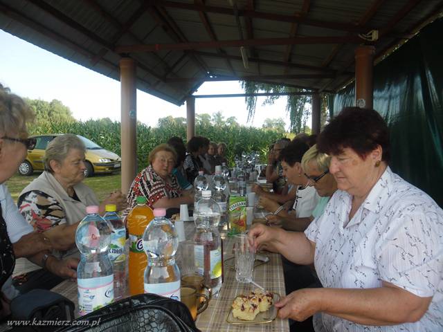 W dniu 16 sierpnia 2013 r., około 50-osobowa grupa członków koła emerytów i rencistów z Kaźmierza spotkała się na wspólnej biesiadzie na terenie wypoczynkowym Agro – Zalew u Państwa Pszczołów w Radzynach. Zabawa w miłym towarzystwie i przy dobrej muzyce, a także specjały w postaci ciepłych kiełbasek, kaszanki, chleba ze smalcem oraz domowe wypieki sprawiły, że emeryci już planują kolejne spotkanie we wrześniu.