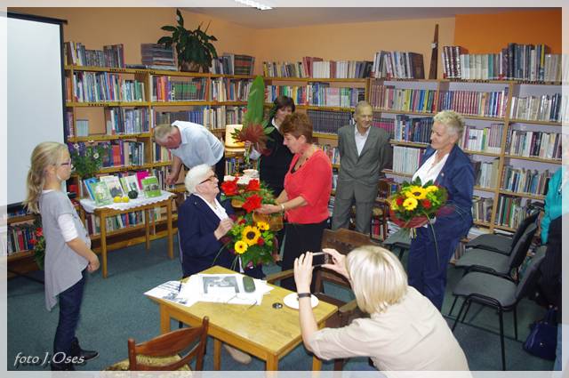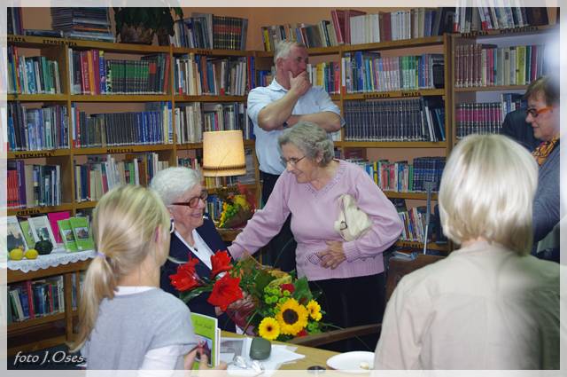 Swoje lata dzieciństwa i młodości spędzili w Kaźmierzu, które z wielką nostalgią wspominają. Pani Dorota Jaskuła swoją wielką pasją przyczyniła się do utrwalenia wydarzeń i osób Kaźmierza, udostępniając zdjęcia, materiały wraz z opracowaniami. Pan Edmund Oses to autor m.in. wierszy, a także wspomnień o Kaźmierzu ("W cieniu kaźmierskiego kościoła", "Kaźmiyrskie ściyżki", "Pokłon tej ziemi"). Z kolei p. Dorota Jaskuła wydała książkę o latach szkolnych: "Cudowne lata w kaźmierskiej Szkole". We wspomnienia pani Jaskułowej wplatał fragmenty swej twórczości pan Oses, dołączyli się do tego również mieszkańcy Kaźmierza przybyli na spotkanie. Prezentowane były także fotografie z tego okresu. Wspomnienia więc snuły się i snuły, dostarczając wielu wzruszeń, uśmiechu, a ich końca nie było widać. Pani Urszula Kowzan - emerytowana nauczycielka historii, która z wielkim zaangażowaniem i starannością opracowała i nadal opracowuje materiały dotyczące historii Kaźmierza, a zwłaszcza udziału mieszkańców naszego regionu w Powstaniu Wielkopolskim, pięknymi słowami i bukietem kwiatów podziękowała pani Dorocie Jaskułowej za pomoc w zachowaniu, utrwalaniu naszej historii. Zresztą tych bukietów było znacznie więcej. W organizację spotkania zaangażowała się synowa pani Jaskułowej - pani Maria Jaskuła, która przygotowała wystawę sprzętu gospodarstwa domowego oraz poczęstunek, za co serdecznie dziękujemy.