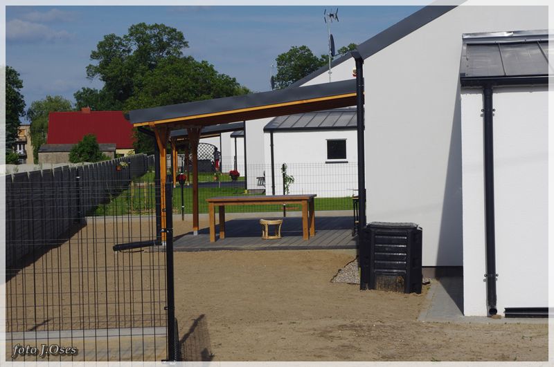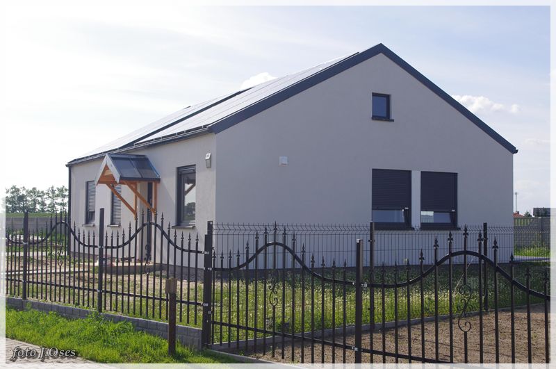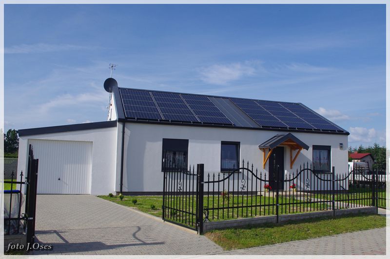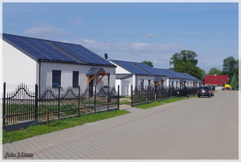 Jest to możliwe, ponieważ wspomniane budynki powstały tzw. nanotechnologii z elektrowniami słonecznymi, inteligentnym ogrzewaniem infra red oraz samouczącym się podgrzewaczem wody użytkowej. W tej sytuacji nie potrzeba przyłącza gazowego, a przyłącze elektryczne służyć będzie tylko jako bufor. Na taką technologię postawiła firma budowlano – instalacyjna FILAR Zenona Augustyna. Obecnie kilka domów jest już gotowych w tym część jest już zamieszkała. Powierzchnia użytkowa parterowego domu na działce 630 m² wynosi około 80 m². Są to domy tzw. pod klucz. Kuchnie i łazienki wyposażone mieszkania posiadają również garderoby. Działki są ogrodzone na terenie chodniki, wjazd i opaska wokół budynku z otoczaka. Osiedle jest skanalizowane. Przy każdym domu jest obszerny taras 32 m². Są to domy częściowo samo spłacające, czyli zero energetyczne plus. Wykonawca Zenon Augustyn zapewnia, że oferta tanich w eksploatacji domów skierowana jest głównie dla ludzi młodych na dorobku. Jak już ktoś bierze kredyt na dom i będzie spłacał go przez długie lata to niech, chociaż nie wydaje kolejnych dużych kwot na jego utrzymanie mówił w rozmowie ze mną pan Zenek. Odwiedzając to nowe osiedle miałem wrażenie, że przeniosłem się nieco w czasie. Na dachach budynków zainstalowane ogromne panele fotowoltaiczne wytwarzające energię elektryczną z promieniowania słonecznego. Nowe osiedle, a już przed domami ulica (jeszcze bez nazwy) wybrukowana kostką. Na ulicach latarnie ledowe zasilane własną energią. Dojazd, choć w tej chwili możliwy tylko od ul. Topolowej jest całkiem niezły, bo droga, póki co jeszcze gruntowa została dobrze utwardzona. Jak zapewnił mnie p. Zenek niebawem dojazd do osiedla będzie również możliwy od strony ul. Nowowiejskiej. Docelowo na przylegających działkach (tzw. osiedle słoneczne) ma powstać 20 podobnych domów i dalsze 72 domy w tej samej technologii powstaną na sąsiednim osiedlu (tzw. osiedle słoneczne II) z wjazdem od ul. Topolowej. Jest to bez wątpienia najbardziej ekologiczne osiedle w naszej gminie i chyba długo trzeba by szukać podobnego w najbliższej okolicy.
