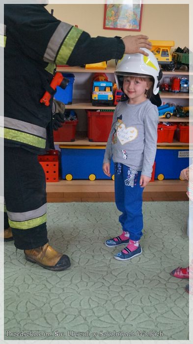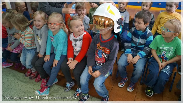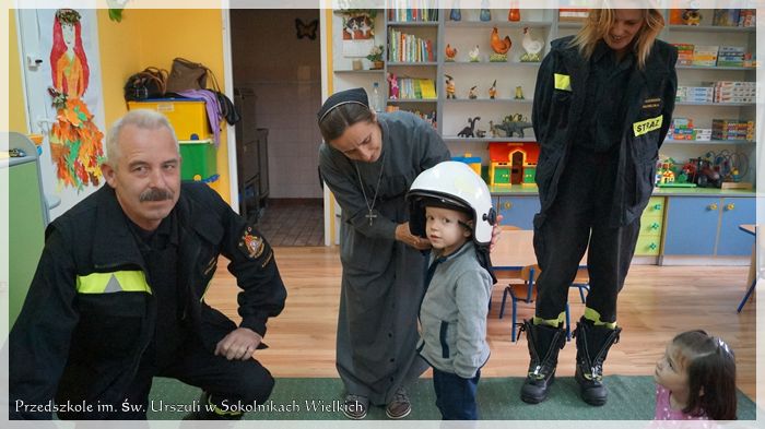 W drugim tygodniu października w Przedszkolu Niepublicznym im. św. Urszuli Ledóchowskiej w Sokolnikach Wielkich miało miejsce ciekawe spotkanie. Dzieci odwiedzili strażacy z jednostki OSP z Kaźmierza. Przedszkolaki mogły posłuchać o ich pracy, zadać pożarnikom nurtujące ich pytania, obejrzeć wóz strażacki, zapoznać się ze sprzętem ratowniczo-gaśniczym, a nawet przymierzyć hełm strażacki.