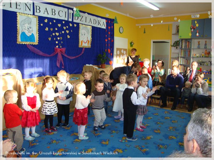 24 i 25 stycznia 2015 Przedszkole Niepubliczne w Sokolnikach Wielkich obchodziło uroczystość Dnia Babci i Dziadka. Grupy „Maluchów” i „Starszaków” świętowały w sobotę, natomiast „Średniaków” w niedzielę. Wszystkie oddziały wraz z paniami wychowawczyniami bardzo wytrwale, sumiennie i wielkim zaangażowaniem przygotowywały się do tego dnia. Stworzono piękne programy artystyczne, podczas których dzieci deklamowały wiersze, śpiewały i tańczyły, doprowadzając wielu z gości do wzruszeń.