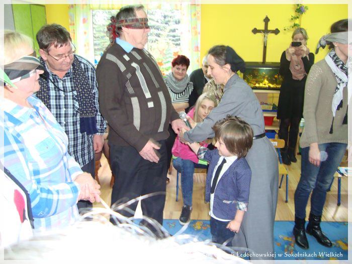 Grupa „Średniaków”, wśród bogactwa strojów, ciekawie zainscenizowała przedstawienie teatralne o „Jarzębince”, a „Starszaków” świetnie sprawdziła się w roli tancerzy, prezentując układ do Polki łęczyckiej. Kulminacją spotkań były wspólne zabawy Dziadków z wnukami, podczas których nie brakowało śmiechu i wzajemnie okazywanej miłości. Po części artystycznej, wnuki wraz z Dziadkami mogli zasiąść do stołu, by przy kawie, herbacie i słodkościach przygotowanych przez rodziców, wspólnie celebrować tę piękną uroczystość. Podczas świętowania w grupie „Średniaków” można było wysłuchać akordeonowych improwizacji jednego z dziadków i dać się ponieść muzyce w tanecznych duetach. Ten wyjątkowy weekend upłynął w atmosferze miłości, wzajemnej życzliwości i radości. Oby każdy dzień skłaniał do dziękowania za Dobro, jakim są nasze babcie i dziadkowie.