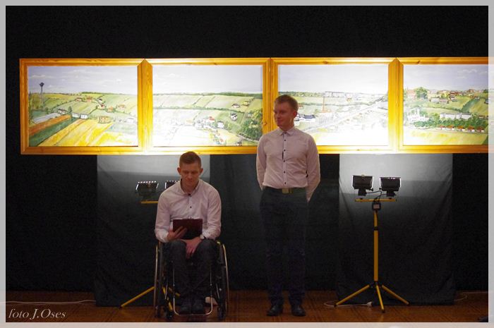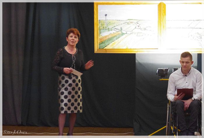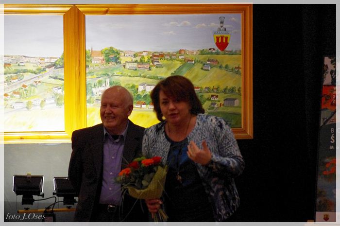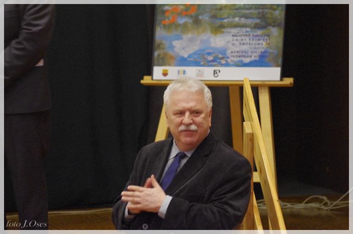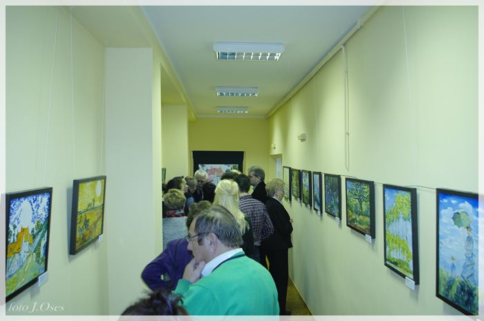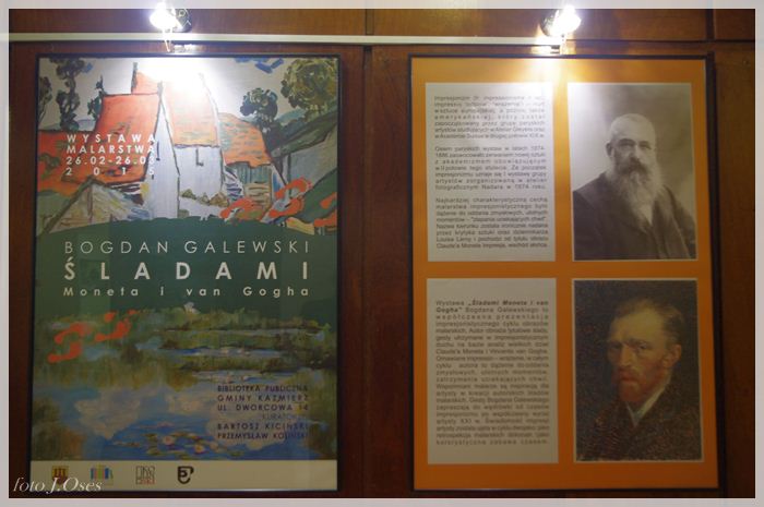 Część z nich inspirowanych twórczością takich artystów jak Monet i van Gogh, p. Galewski postanowił pokazać na wystawie, której współorganizatorem jest nasza biblioteka. Kuratorami wystawy są Bartosz Kiciński i Przemysław Koliński. Wernisaż wystawy zatytułowanej „Śladami Moneta i van Gogha” miał miejsce 26 lutego 2015 r. w sali kinowej, gdzie na scenie umieszczona została składająca się z czterech obrazów panorama Kaźmierza, którą p. Bogdan namalował w latach 1999-2000. Z zaproszenia skorzystała spora grupa osób, wśród których byli; wójt gminy Kaźmierz p. Zenon Gałka i jego zastępca p. Ryszard Gąska, wiceprzewodniczący Rady Gminy Kaźmierz p. Jerzy Kamiński, członkowie rodziny naszego artysty oraz przyjaciele i mieszkańcy naszej gminy. Przybyłych na otwarcie wystawy gości powitała dyrektor biblioteki p. Maria Sobkowiak następnie głos zabrali kuratorzy panowie Bartosz i Przemysław. Ten drugi wspomniał o swoich ciepłych relacjach z rodziną państwa Galewskich, których jak się wyraził traktuje jak przyszywanych dziadków. Usłyszeliśmy również, że w związku z tym, że córki p. Galewskich mieszkają poza granicami Polski, obrazy p. Bogdana wiszą w mieszkaniach ich przyjaciół w Berlinie, Frankfurcie i Brukseli są także ozdobą biur Komisji Europejskiej. W dalszej części głos zabrał autor wystawy, który podziękował wszystkim za zainteresowanie i przybycie i zaprosił do zapoznania się z jego malarstwem. Oficjalnego otwarcia wystawy dokonał wójt Zenon Gałka. Organizatorzy zapraszają do jej odwiedzania codziennie w godzinach pracy biblioteki do dnia 26 marca 2015 r.