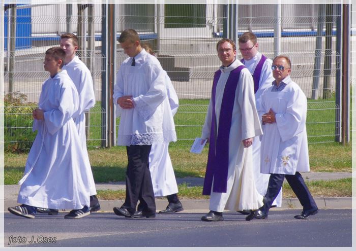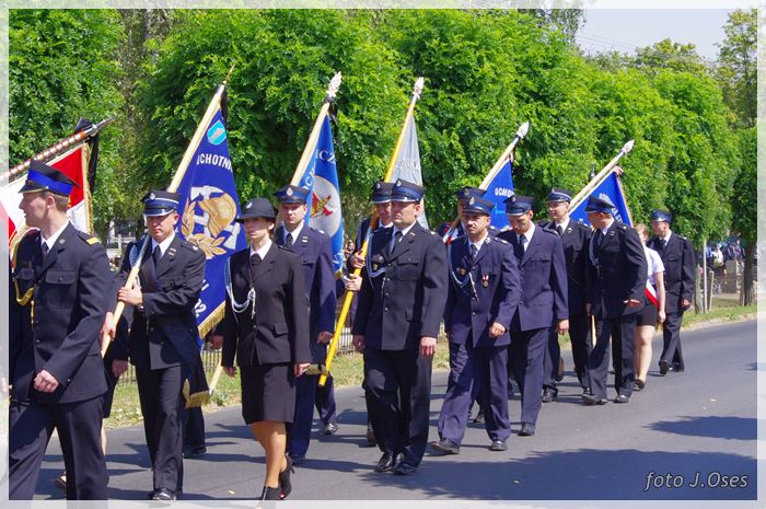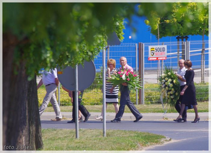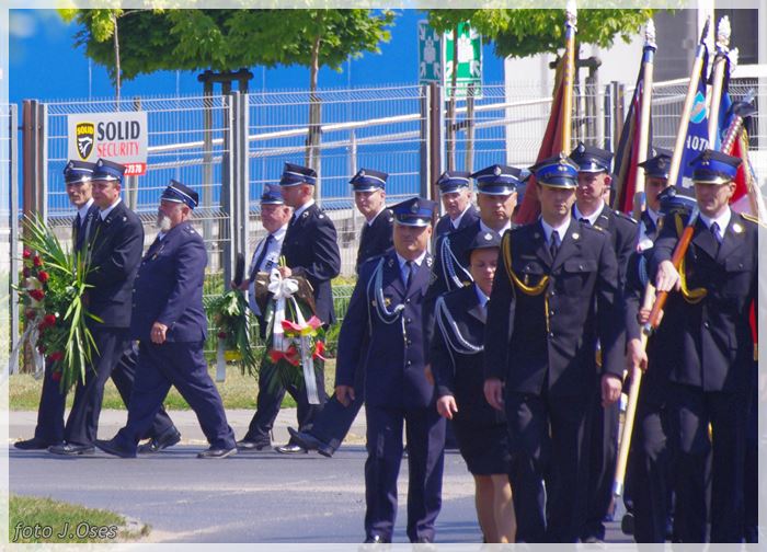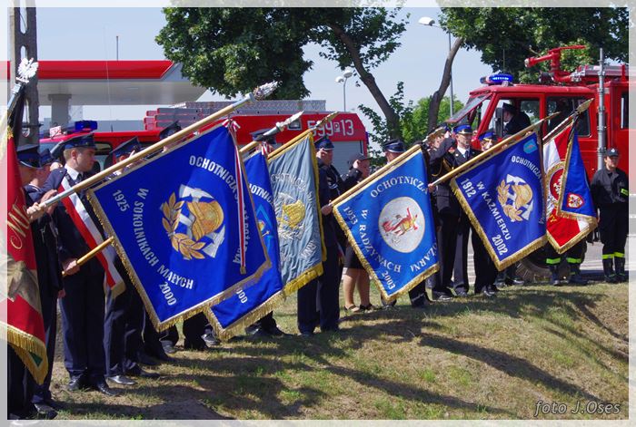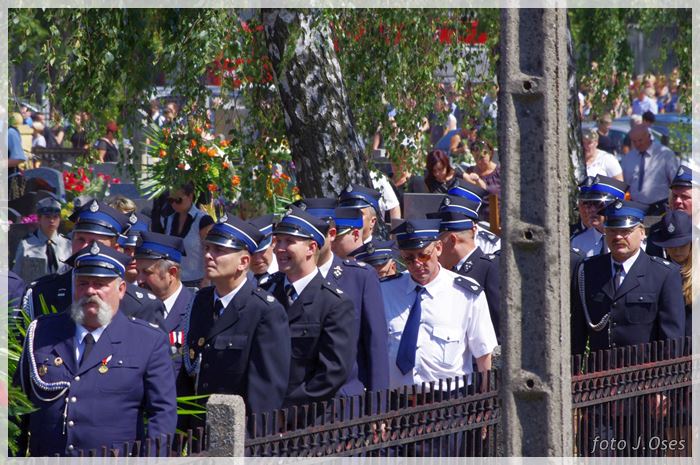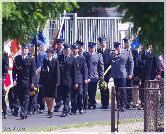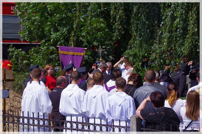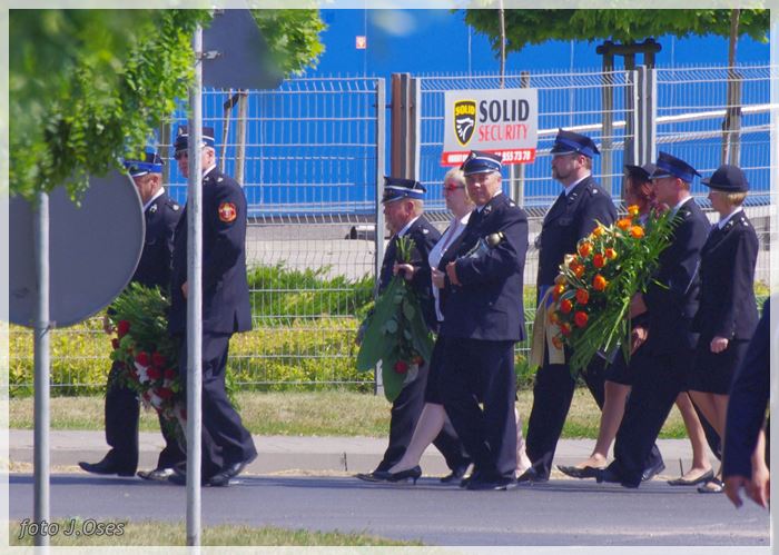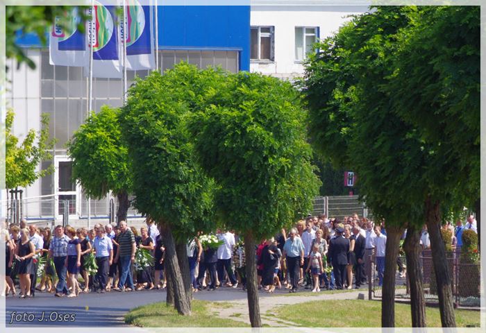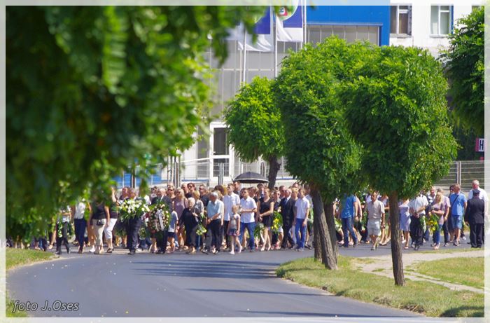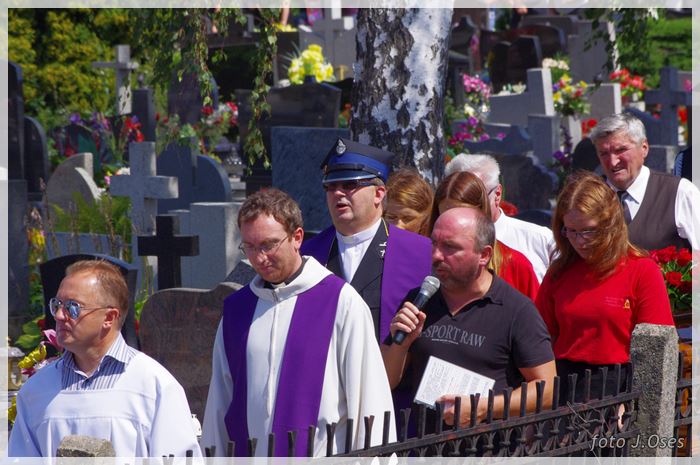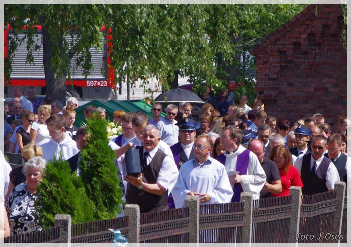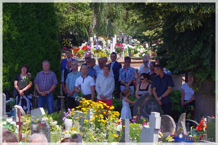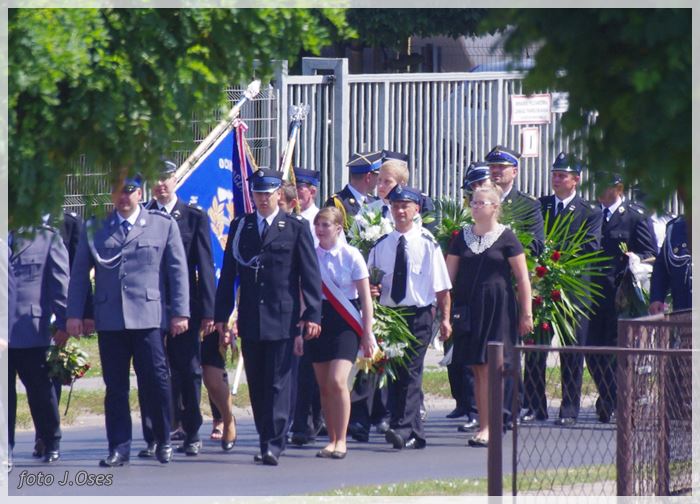 W uroczystościach pogrzebowych uczestniczyły licznie poczty sztandarowe, na których czele były poczty OSP Kaźmierz i Gimnazjum im. Adama Mickiewicza w Kaźmierzu. W swojej homilii ks. Maciej zwrócił również uwagę na to jak pogodnym, zawsze uśmiechniętym, obdarzonym ponadprzeciętnym poczuciem humoru był zmarły Andrzej. Po mszy św. tłum uczestników uroczystości pogrzebowej odprowadził ciało zmarłego na miejsce wiecznego spoczynku, na cmentarzu parafialnym w Kaźmierzu. Nad grobem krótkie słowo pożegnania wygłosili zastępca dyrektora gimnazjum p. Małgorzata Nowak i w imieniu strażaków druh Paweł Góralczyk. Przypomnę, że śp. Andrzej Nowacki w szeregi OSP Kaźmierz wstąpił w roku 1988. Jako młody adept pożarnictwa przeszedł wszystkie szczeble „drabiny pożarniczej” poczynając od strażaka poprzez mechanika-kierowcę, ratownika technicznego, dowódcę, ratownika medycznego. W latach 2001-2011 pełnił funkcję skarbnika jednostki. W roku 2011 powierzono mu funkcję prezesa jednostki OSP Kaźmierz. Za swoją dzielną i ofiarną postawę otrzymał odznaczenia; „STRAŻAK WZOROWY”, „ZA WYSŁUGĘ 25 LAT”, brązowy, srebrny i złoty medal „ZA ZASŁUGI DLA POŻARNICTWA”, „Medal za udział w akcji gaszenia lasów na Dziewiczej Górze”. Za prezesury druha Andrzeja otworzyła się nowa karta w historii OSP Kaźmierz. Miał wiele pomysłów na to jak powinna wyglądać organizacja jednostki w obecnych czasach. Druhowie strażacy z OSP Kaźmierz zapewniają, że dalej kroczyć będą wskazaną przez swojego dotychczasowego prezesa drogą.