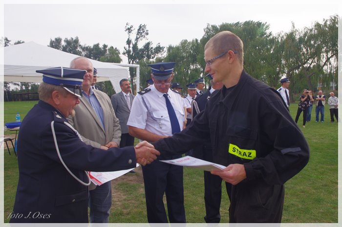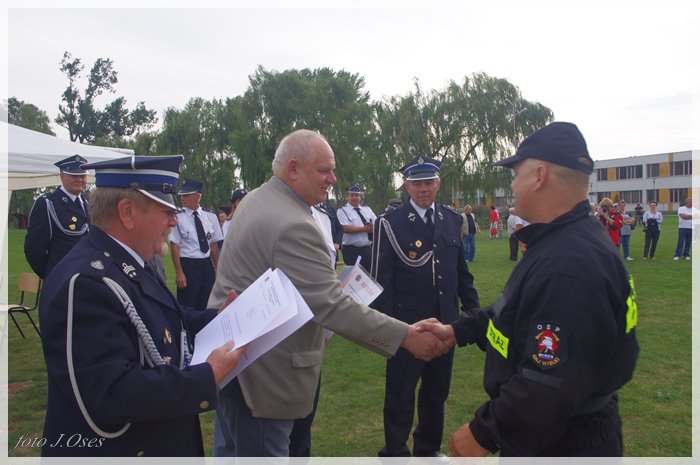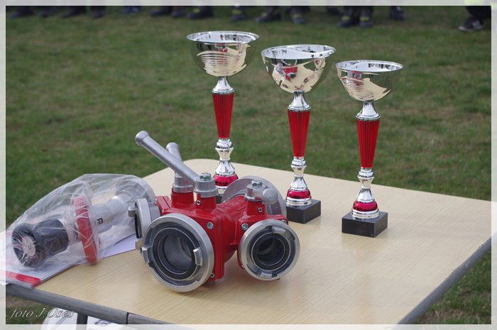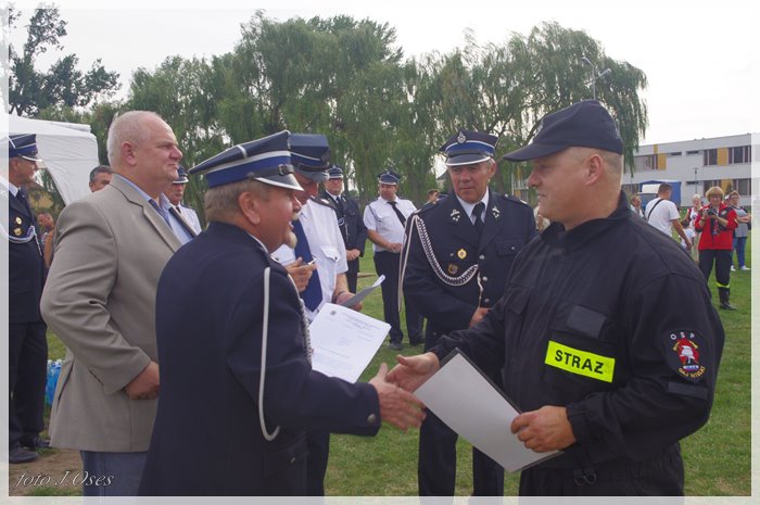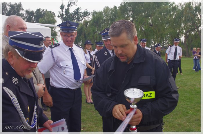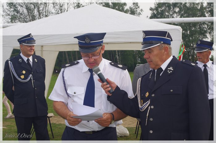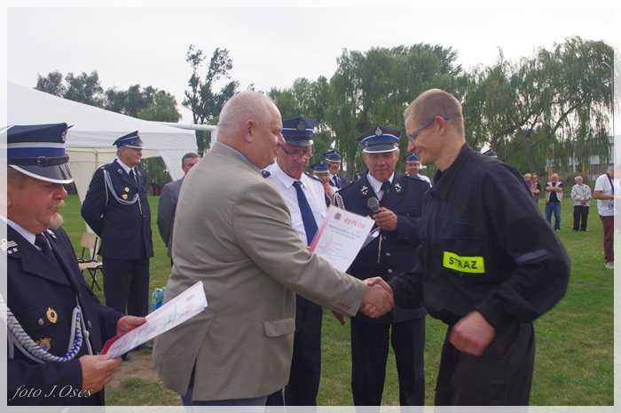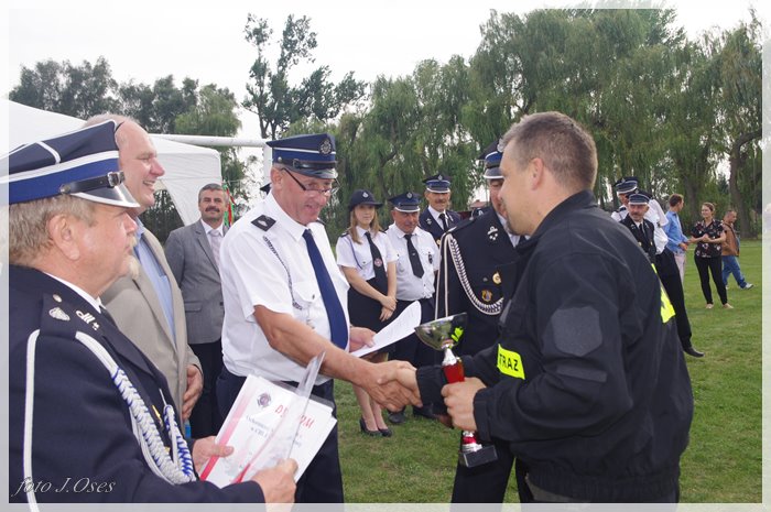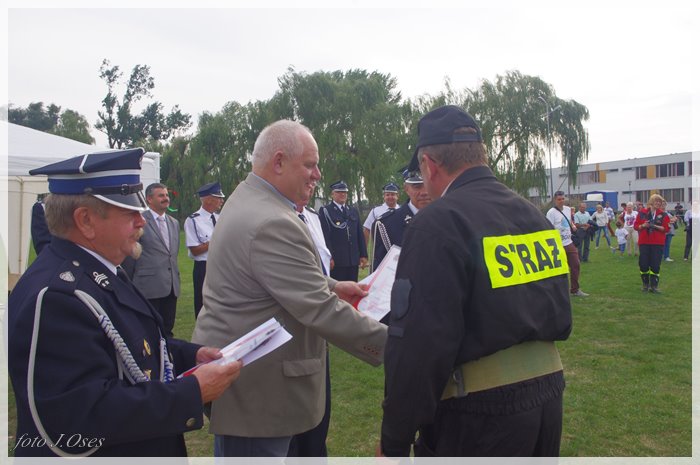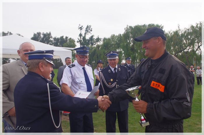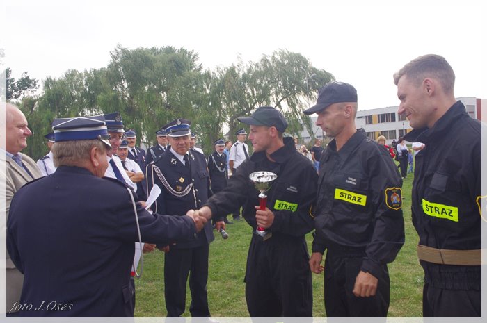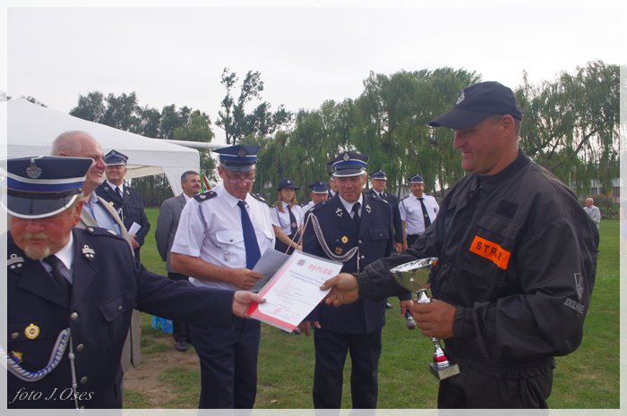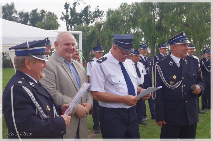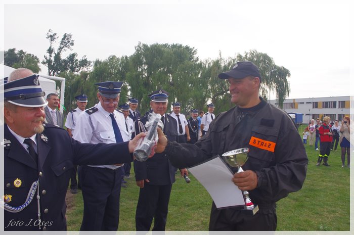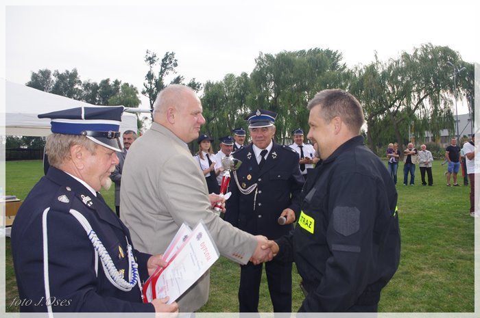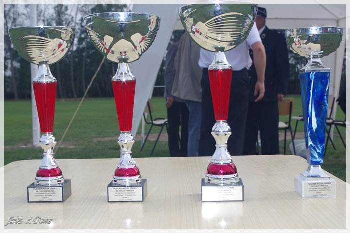 Puchary i dyplomy w imieniu wójta wręczał jego zastępca p. Ryszard Gąska w towarzystwie druhów; Zenona Pawlaczyka, Marka Człapy i Grzegorza Skabary.