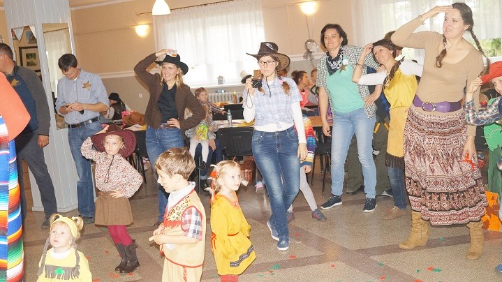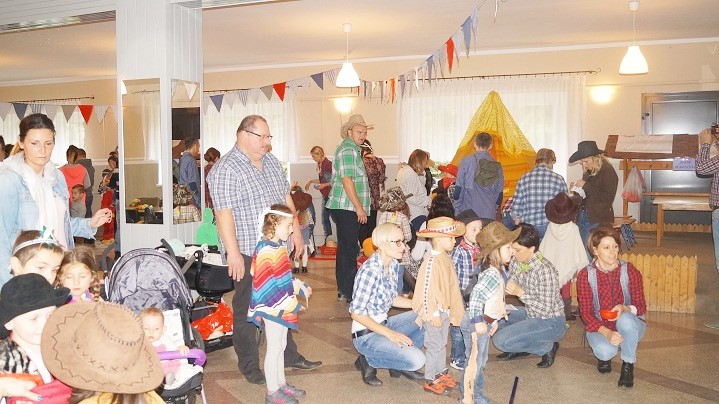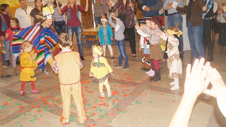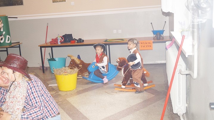 8 października dzieci z Przedszkola Niepublicznego im. św. U. Ledóchowskiej i ich rodzice bawiły się w „dziki zachód”. Wnętrze świetlicy wiejskiej w Sokolnikach Małych zmieniło się w westernowe miasteczko pełne atrakcji i niespodzianek. Przyciągały wzrok elementy wystroju takie jak: kolorowy wigwam, konie (na biegunach), kaktusy (wykonane przez dzieci) oraz stanowiska konkursowe w plastycznej oprawie dopełniającej klimat spotkania. Charakter imprezy podkreślili też uczestnicy, przebierając się za Indian i kowbojów. Każdej rodzinie towarzyszyły radosne emocje podczas zbierania punktów np. za celne rzuty kapeluszem i lassem. Trzeba było także przyczepić gwiazdę szeryfa i znaleźć ukryte w słomie złoto.